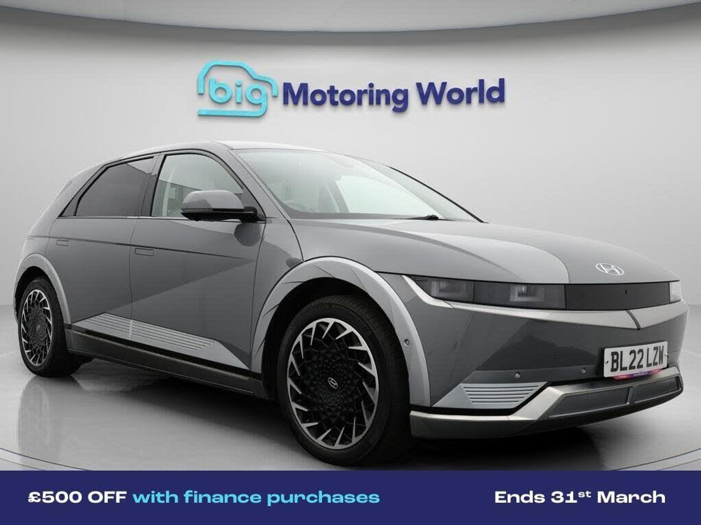 All Wheel Drive,Head up Displa-Our Hyundai IONIQ 5 is finished in Grey. Specification includes a range of fantastic features including All Wheel Drive, Head up Display, 20'' Alloy Wheels, Apple CarPlay, Heated Seats, Wireless Phone Charging, Comfort Ventilated Front Seats, Heated Steering Wheel, Bluetooth, Blind Spot Assist Specification information is supplied by CAPHPI and may vary to the actual car. This data does not form any part of a buying contact. Please check specification prior to purchase in-store. The MOT is valid until January 2027, visit bigmotoringworld.co.uk for more photos, a 360 tour, service history and a free HPI report.Were BIG on peace of mind and this Grey Hyundai IONIQ 5 has completed our comprehensive 200 point inspection and passed all checks. Its ready for you to drive away with immediate collection in-store. We include a 90-day warranty as standard plus an option to extend for up to 3 years.Reserve this car exclusively for you, safely and securely at bigmotoringworld.co.uk, with a fully refundable £99 deposit. Test drive before you buy, with no commitment, no hassle and a completely haggle free experience. Still searching and want to see thousands more cars? We are BIG on choice with over 8000 cars to choose from.Visit our award winning web site bigmotoringworld.co.uk.Were Big Motoring World and were BIG on what matters to you.