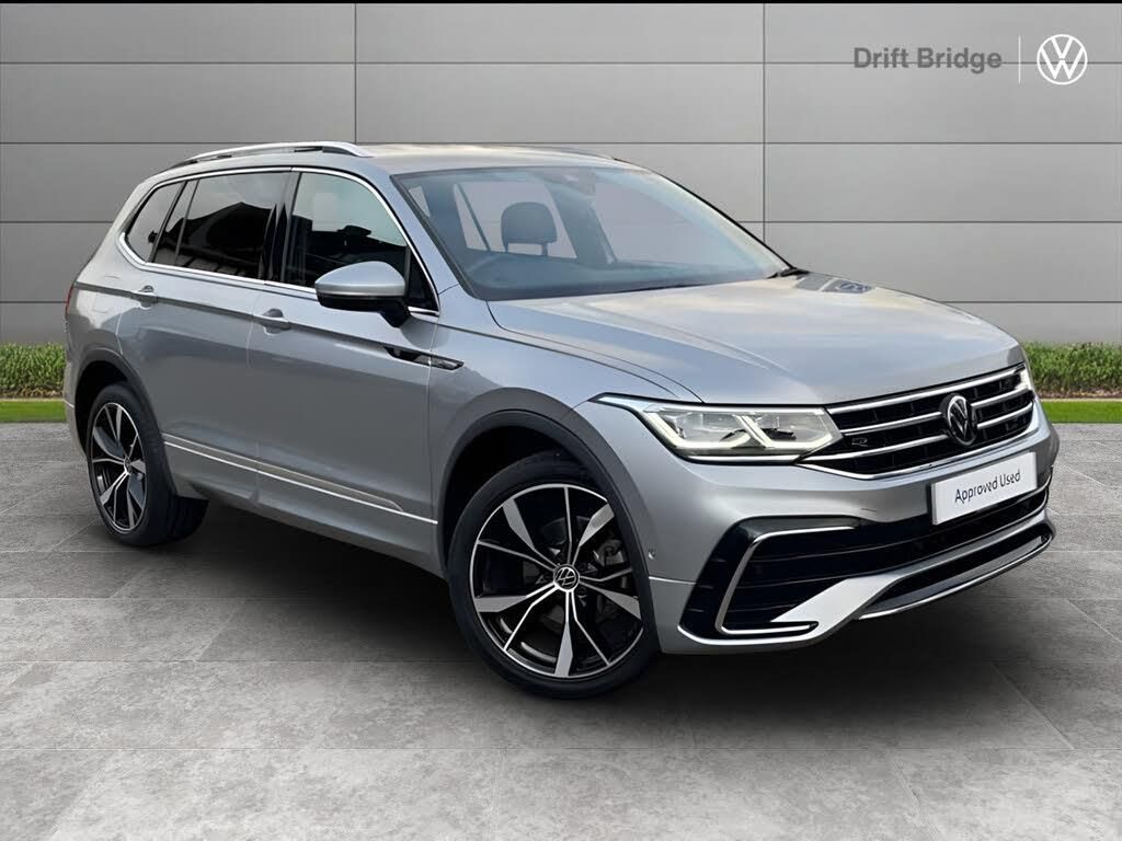 Exterior Features, Privacy glass, Metallic paint, Safety, Rear view camera, Electrically foldable exterior mirrors, Interior Features, Art Velours greyson sports cloth upholstery, Miscellaneous, Discover Navigation including Streaming & Internet, Packs, Park assist pack - Tiguan Allspace, Paint - Metallic, Metallic - Pyrite Silver, Trim - Cloth, Art Velours greyson sports cloth - Magnetic grey/Titanium black, Wheels, 20" Misano black with diamond turned surface alloy wheels with Airstop tyres, Space and weight saving spare wheel with luggage compartment adjustable in 2 heights, tool kit and jack, Exterior Features, Heated windscreen washer jets, Rain sensor, Rear wiper, Front wheel drive, Chrome mouldings on side window, Exterior badge deletion, Rear side wing doors, Rear spoiler in R style, Silver roof rails, Automatic headlight control system, Coming/leaving home lighting function, Dark red rear combination lamps in LED technology, Headlight range control, LED headlamps with LED separate signature running light and dynamic cornering light, Poor weather light and cornering light, Rear fog light, Third brake light, Safety, ABS+EBD+Brake assist, Electronic parking brake, Electronic Stability Control (ESC) inc EDL (Electronic Differential Lock) and ASR (Traction Control), Rear disc brakes, Adaptive cruise control, Driver alert system, Driver profile selection, Dynamic road sign display, Lane change system side assist and rear traffic alert, Lane keeping system Lane Assist, Multifunction front facing camera, Progressive steering, Auto dimming interior rear view mirror, Exterior mirror housings painted in silver, 3 point seat belt for centre rear seat, 3 rear three point seatbelts, Driver and front passenger safety-optimised head restraints, Driver's and front passenger's airbag with front passenger's airbag deactivation switch, Height adjustable front 3 point seatbelts + pretensioners, Manual rear child locks, Pedestrian monitoring, PreCrash preventive occupant protection Front and rear, Side airbag in front and rear with curtain airbag, Two tone horn, Warning buzzer for seatbelts if unfastened, Interior Features, Front + rear carpet mats, Air Care Climatronic 3 zone automatic climate control with enhanced air filter and controls in the rear, 12-volt outlet in centre console rear and luggage compartment, 12V socket in centre console, Black roof lining, Door and side trim panel with leatherette insert, Drawers under front seats, Front centre armrest, Heated leather wrapped multifunction sports steering wheel with touch control and shift paddles, Illuminated scuff plates, Leather gearshift handle, Stainless steel pedals, Front footwell illumination, LED interior light with switch off delay/dimmer and 2 front/rear LED reading lights, Sun visors with illuminated vanity mirrors, Audio / Communications, App-Connect, Mobile phone interface comfort with inductive charging feature, 2 USB-C ports in the front, 1 USB-C charging socket on the center console in the rear, 8 Speakers, DAB Digital radio, Diversity antenna for FM reception, Radio, Driver Convenience, Electric boot lid, Miscellaneous, Digital cockpit pro, eCall emergency call service, Speedo and rev counter, electronic odometer, trip, service interval display and exterior temperature gauge, Start-stop system with battery regeneration (recuperation - energy recovery during braking), Packs, Ambience pack - Tiguan Allspace R Line, Driver assistance plus package - Tiguan Allspace, Trim, 3 head restraints in rear, 3 individual folding 2nd row seats, 3rd row 2 individual seats, Driver and front passenger seat height adjustment, Foldable front passenger seat backrest, Heated front seats, ISOFIX anchorage points for mounting 2 child seats on rear seats and i-Size child seats, Security, Anti theft alarm system with interior monitoring, backup horn and towing protection, Anti-theft wheel bolts, Electronic steering lock, Remote central locking with 2 remote fold
