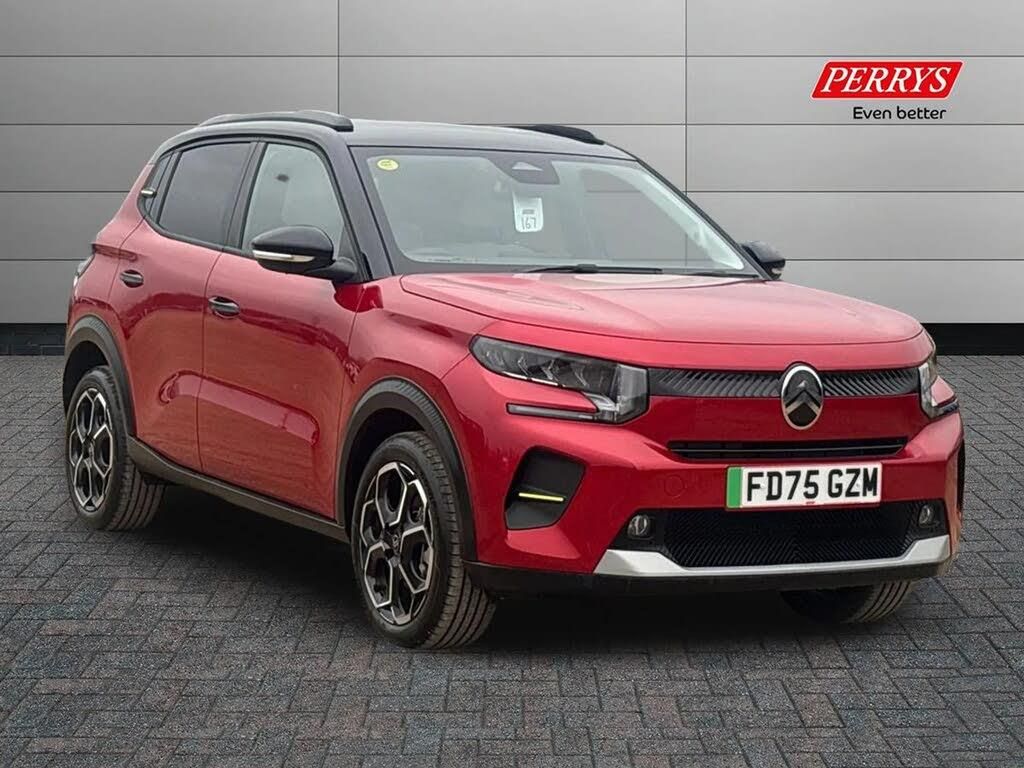 1x USB-C connection on dashboard,1x USB-C fast charge in row 2,1x USB-C fast charge on high console,Active lane departure warning system,Citroen connect box emergency and assistance system,Connected services,Cruise control + speed limiter,e-toggle gear selector,eCall emergency call system,Electric power steering,Exterior temperature display,Head up Display,Multi function trip computer,Rear parking sensors,Reversing camera,Wireless Smartphone charger,Advanced comfort suspension with progressive hydraulic cushions,Fast charging DC 100kW,Mode 3 charging cable - Monophase 7kW - 6metres,Remote charging,Citroen connect nav with DAB radio, 6 speakers, 10.25" capacitive touchscreen, wireless mirror screen, apple carplay/android auto and bluetooth,3D rear light signature,Automatic activation of hazard warning lights,Automatic headlights,Black roof bars,Black wheel arch extensions,Body colour bumpers,Dark tinted tailgate and rear side windows,Electric front power windows with auto up/down for the driver and auto down for passenger,Electric rear power windows,Electrically heated, folding and adjustable external rear view mirrors,Electrochrome auto dimming interior rear view mirror,Fog lights integrated into front bumper,Front and rear skid plates in grey,Front intermittent wipers,Gloss black exterior door handles,Gloss black finish B and C pillar,Gloss black rear view mirror caps,Heated acoustic windscreen,Heated rear window,Intelligent beam headlights,LED daytime running lights,LED headlights with electric levelling,LED rear lights,LED third brake light,Rear roof spoiler,Rear side wing doors,Turn indicators integrated into rear view mirrors,1 litre bottle storage in front and rear door pockets,1/3 to 2/3 split folding rear seat,12V socket on console,4x anchoring rings on boot,Advanced comfort front and rear seats,Automatic air conditioning,Bag support hook in boot,Cabin temperature pre-conditioning,Central storage with 2 cupholders,Chrome effect interior door handles,Closed glove box,Cloth/leather effect upholstery,Driver and passenger's sun visor with courtesy mirror,Driver's seat height adjustment,Fixed boot light,Front and rear floor mats,Front seats adjustable with forward back slide and adjustable backrest,Heated front seats,Heated steering wheel,Height adjustable front head restraints,Height/reach adjust steering wheel,High console with armrest and closed storage,ISOFIX mounting on outer rear seats with top tether and labels indicating fixing points,Leather effect steering wheel with gloss black and chrome elements and integrated audio/telephone/cruise control/speed limit controls,LED front lighting panel with map reading lights,Map pockets in back of driver and front passenger seats with additional pocket for smartphone storage,Padded fabric armrests in front and rear doors with labels,Parcel shelf,Seatbelt unfastened on the move audible and visual alert for front and rear seats,Single front passenger seat,Three rear headrests,Safety pack - C3 Plus and Max,Visibility pack - C3 Plus and Max,ABS,Child locks on rear doors,Driver and front passenger seatbelts with pyrotechnic pretensioners and force limiters,Driver's airbag,Electric parking brake,ESP with anti skid system,Front passenger airbag,Front passenger airbag deactivation,Front side airbags + front/rear curtain airbags,Hill start assist,Mono-tone horn,Three rear 3-point seatbelts,Tyre pressure monitoring system,Automatic door and boot locking when moving off with automatic unlocking in case of impact,AVAS Approaching vehicle alert system,Central locking with deadlocks,Connected anti theft alarm (Volumetric and perimetric with tilt sensor),Immobiliser,Remote control central locking with 1x plip key and 1x non plip key,2 side air vents and 2 central air vents on dashboard,Grey decor on dasbhboard,Grey decor on front doors,17" Atacamite diamond cut bi-tone alloy wheels with locking wheel nuts