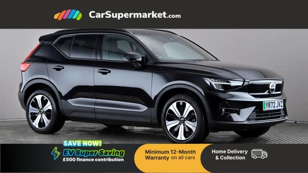 Bluetooth, Cruise Control, Adaptive Cruise Control, Blind Spot Monitoring, Sat Nav, Apple CarPlay, Android Auto, Digital Radio;This 2022 Volvo XC40 Plus Electric has had only one owner and boasts a clear vehicle history check, ensuring peace of mind. This desirable electric SUV offers a substantial battery total capacity of 69 kWh, providing a maximum range of 262 miles when new. Charging is convenient, with a full charge at home using a 7kW charger taking approximately 11 hours, and rapid charging to 80% from empty achievable in just 36 minutes at a public charging station. The MOT is valid until November 2026. The XC40 Plus Electric is equipped with a suite of useful features designed to enhance your driving experience. These include Volvo Cars Services with App, which offers Keyless Entry for effortless access, and comprehensive parking assistance. You'll benefit from a Rear Park Assist Camera, Rear Park Assist with rear sensors, and Front Park Assist with front sensors, making manoeuvring in tight spaces significantly easier. Furthermore, the Bluetooth Handsfree System allows for safe and convenient connectivity on the go. This model also highlights its large boot space, offering practical storage solutions for all your needs, setting it apart from other vehicles in its class.