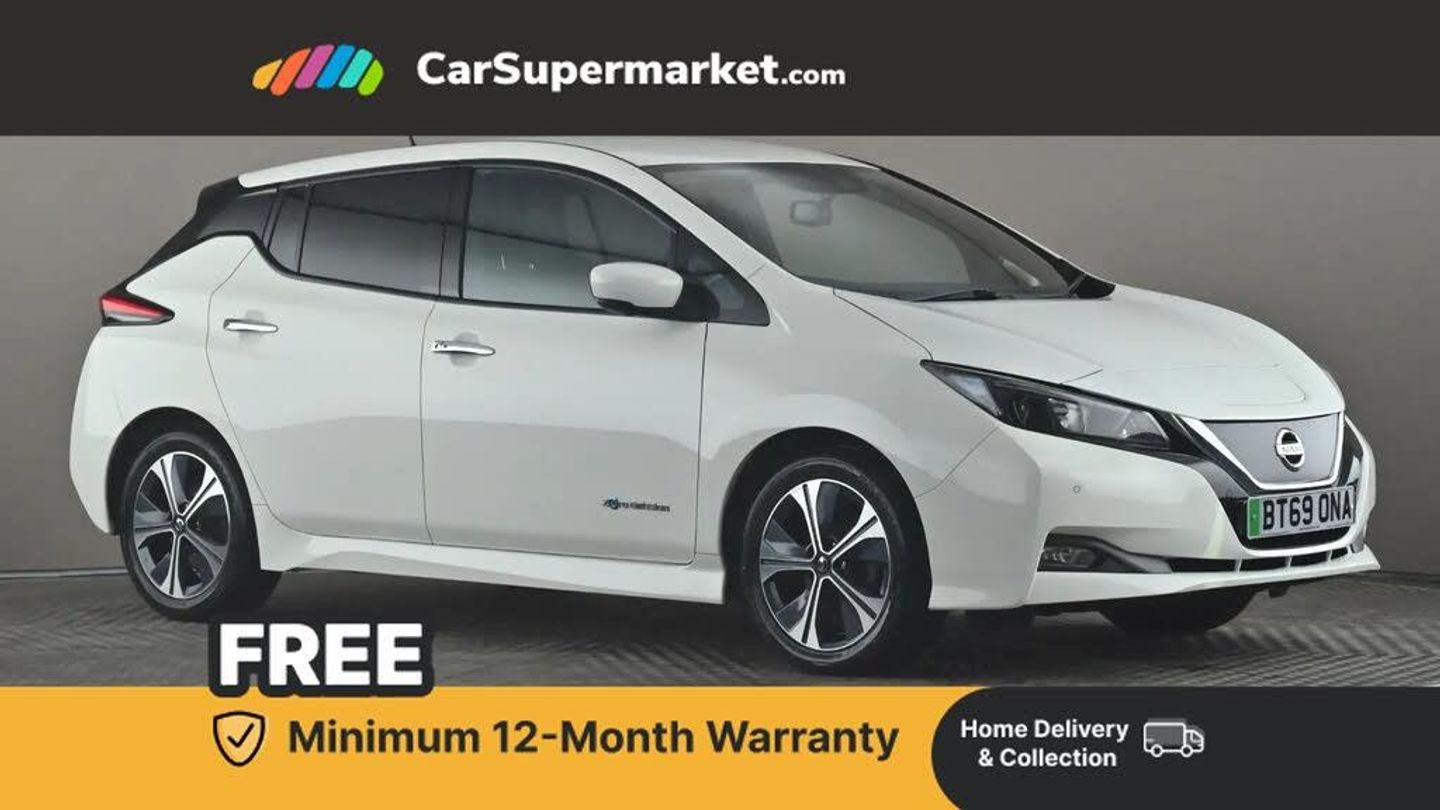 Android Auto, Apple CarPlay, Blind Spot Monitoring, Cruise Control, Lane Departure Warning, Sat Nav, Privacy Glass, 17" Alloy Wheels;With an MOT valid until February 2027, this 2019 Nissan Leaf N Connecta offers excellent peace of mind for its next owner. This electric vehicle boasts a 40 kWh battery, providing a maximum range of 168 miles when new. Charging is convenient, with a full charge at home taking approximately 7 hours and 30 minutes using a 7kW charger, while rapid public charging can take you from empty to 80% in just 1 hour and 20 minutes. The vehicle has a partial service history, with its last service recorded at 54,120 miles on 4th February 2026, and comes with a clear vehicle history check. Notable features include Blind Spot Warning with Blind Spot Assistance, Intelligent Auto Headlights that switch on automatically, a Rear View Camera for easier parking, and Nissan i Key with keyless entry for added convenience.