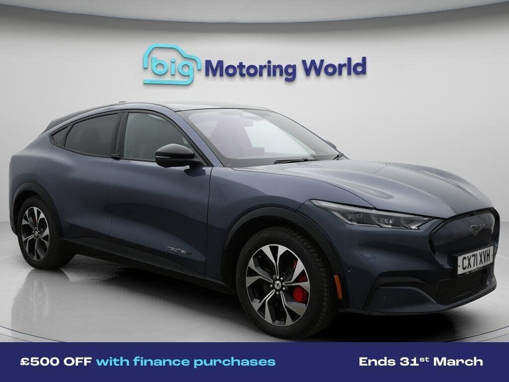 £500 towards your finance depo-Our Ford Mustang Mach-E comes with optional extras worth £950. Specification includes a range of fantastic features including £500 towards your finance deposit, Panoramic Roof, All Wheel Drive, 19'' Alloy wheels, Leather Seats, Apple CarPlay, Adaptive Cruise Control, Bang & Olufsen Speakers, Premium Sound System, Ford SYNC Specification information is supplied by CAPHPI and may vary to the actual car. This data does not form any part of a buying contact. Please check specification prior to purchase in-store. The MOT is valid until October 2026, visit bigmotoringworld.co.uk for more photos, a 360 tour, service history and a free HPI report.Were BIG on peace of mind and this Blue Ford Mustang Mach-E has completed our comprehensive 200 point inspection and passed all checks. Its ready for you to drive away with immediate collection in-store. We include a 90-day warranty as standard plus an option to extend for up to 3 years.Reserve this car exclusively for you, safely and securely at bigmotoringworld.co.uk, with a fully refundable £99 deposit. Test drive before you buy, with no commitment, no hassle and a completely haggle free experience. Still searching and want to see thousands more cars? We are BIG on choice with over 8000 cars to choose from.Visit our award winning web site bigmotoringworld.co.uk.Were Big Motoring World and were BIG on what matters to you.
