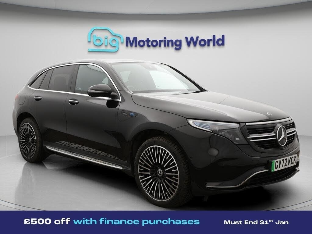 £500 towards your finance depo-Our Mercedes-Benz EQC comes with optional extras worth £715. Specification includes a range of fantastic features including £500 towards your finance deposit, Comfort Pack, All Wheel Drive, 21'' Alloy Wheels, Leather Seats, Air Suspension, Apple CarPlay, AMG body styling, Parking Pack, Premium Specification information is supplied by CAPHPI and may vary to the actual car. This data does not form any part of a buying contact. Please check specification prior to purchase in-store. The MOT is valid until January 2027, visit bigmotoringworld.co.uk for more photos, a 360 tour, service history and a free HPI report.Were BIG on peace of mind and this Black Mercedes-Benz EQC has completed our comprehensive 200 point inspection and passed all checks. Its ready for you to drive away with immediate collection in-store. We include a 90-day warranty as standard plus an option to extend for up to 3 years.Reserve this car exclusively for you, safely and securely at bigmotoringworld.co.uk, with a fully refundable £99 deposit. Test drive before you buy, with no commitment, no hassle and a completely haggle free experience. Still searching and want to see thousands more cars? We are BIG on choice with over 8000 cars to choose from.Visit our award winning web site bigmotoringworld.co.uk.Were Big Motoring World and were BIG on what matters to you.