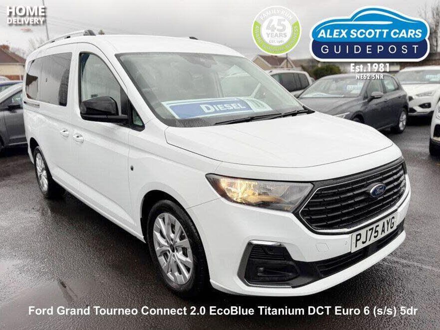 With an exceptionally low mileage of just 1000 miles for its 2025 registration, this one owner Ford Grand Tourneo Connect Titanium presents a remarkable find. Powered by an efficient 2.0L Diesel engine and meeting Euro 6 emissions standards, it boasts a full dealership service history, offering peace of mind. Key features include the convenient Ford KeyFree System for keyless entry, dual zone electronic climate control with air conditioning, and automatic headlights. Enjoy your journeys with the DAB digital radio, complete with Bluetooth, voice control, and connected navigation featuring a 1-year subscription from new.This Ford Grand Tourneo Connect Titanium stands out due to its very low mileage, indicating it has barely been used and is in excellent condition compared to other vehicles of its age. Its low insurance group rating is another significant advantage, suggesting lower running costs for the owner. The combination of its comprehensive service history, single owner status, and desirable Titanium trim makes this a compelling choice for those seeking a spacious and well equipped family vehicle.-Ford Warranty Til 10/2028-ALEX SCOTT CARS GUIDEPOST Award Winning Family Run Business Since 1981 TEL 01670 823777