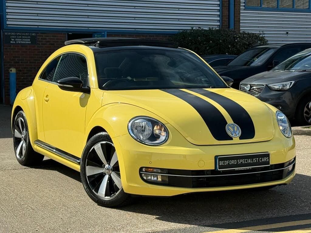 We are pleased to be able to offer this superb example of a pretty rare Beetle 1.4cc petrol Sport in Sunflower Yellow. The car has 1 lady owner since new who is part of the Beetle owners club . The car has been garaged while not in use and driven extremely carefully indeed . She added some very nice factory optional extras including a panoramic sunroof, touchscreen satellite navigation, privacy glass, bodywork black decals , 18 inch alloy wheels , front and rear parking sensors , heated seats, electric climate control, sports dials , colour coded dashboard, plus much more. The car has fully documented service history with no expense spared , 2 x keys.