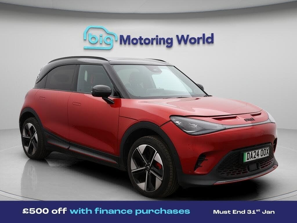 £500 towards your finance depo-Our Smart #1 is finished in Red. Specification includes a range of fantastic features including £500 towards your finance deposit, Panoramic Roof, All Wheel Drive, Head up Display, 19'' Alloy wheels, Part Leather Seats, Apple CarPlay, Adaptive Cruise Control, Lane Assist, Android Auto Specification information is supplied by CAPHPI and may vary to the actual car. This data does not form any part of a buying contact. Please check specification prior to purchase in-store. The MOT is valid until August 2027, visit bigmotoringworld.co.uk for more photos, a 360 tour, service history and a free HPI report.Were BIG on peace of mind and this Red Smart #1 has completed our comprehensive 200 point inspection and passed all checks. Its ready for you to drive away with immediate collection in-store. We include a 90-day warranty as standard plus an option to extend for up to 3 years.Reserve this car exclusively for you, safely and securely at bigmotoringworld.co.uk, with a fully refundable £99 deposit. Test drive before you buy, with no commitment, no hassle and a completely haggle free experience. Still searching and want to see thousands more cars? We are BIG on choice with over 8000 cars to choose from.Visit our award winning web site bigmotoringworld.co.uk.Were Big Motoring World and were BIG on what matters to you.-Multi Award Winning Website & Car Supermarket of the year WINNER 2018. Call now.