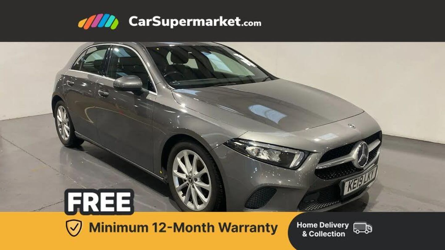 180 degree rear view camera with parking guidelines,7" colour screen in instrument panel,7" touchscreen media display,Active lane keep assist,Attention assist,Brake pad wear indicator warning light,Cruise control + speed limiter,Direct steering,DYNAMIC SELECT with a choice of driving modes (ECO, Comfort, Sport and Individual),ECO start/stop function,Fluid level warning indicator for fuel, oil, coolant and washer fluid,Hard-disk navigation,Lamp failure indicator,Mercedes me connect including emergency call system, accident recovery, breakdown and maintenance management,Outside temperature gauge,Radio aerial integrated into roof spoiler,Service indicator (ASSYST),Speed sensitive power steering,Trip computer,Voice activation,Lowered comfort suspension,DAB Digital radio,Dual bluetooth interface, 2 USB ports (type C),MBUX multimedia system with DAB digital radio and touchpad including satellite navigation,4 Electric Front and Rear windows,Active aerodynamics with AIRPANEL in the front apron,Adaptive brake lights,Blue tinted glass,Body colour bumpers,Body colour door handles,Body colour side skirt,Body coloured door mirrors,Chrome beltline trim,Chrome weather strip,Diamond radiator grille with black pins with one louvre in silver + chrome insert,Electric adjustable and heated door mirrors with integrated LED side indicators,Exhaust system - Twin trapezoidal tailpipes in polished stainless steel,Headlamp assist automatic headlamp activation,Heated glass rear windscreen + timer control,LED high performance headlamps with integrated LED daytime running lights,LED tail lamp,LED third brake light,Rain sensor windscreen wipers,Rear fog lights,Rear wiper,12V socket,3 Spoke leather multi function steering wheel,40:20:40 split folding rear seats,Air vents surround and cruciform nozzle in silver chrome,Artico man-made leather/Fleron fabric upholstery,Auto Mercedes-Benz child seat recognition sensor,Black roof lining,Controller on centre console with chrome surround,Cup holder and stowage compartment lighting,Freight packaging without tie-down hooks,Front centre armrest with storage compartment,Front comfort seats with adjustable head restraints,Front door sills with Mercedes Benz lettering,Front doors with ambient and signal light,Front footwell lights,Front reading lamps,Front seat backs luggage nets,Front seat cushion length adjustment,Front signal exit lamp,Front vanity lights,Gearshift paddles on steering wheel,Handle recess/closing light,Height/reach adjustable steering column,Illuminated glovebox,ISOFIX Child seat top tethers and anchor fixings,Manual height adjustable front seats,Oddments tray lighting,Rear head restraints,Rear Reading Lamps,Seat occupancy sensor for front passenger seat,Spectacles compartment for driver,Storage compartment under load area floor,Stowage compartment in centre console with retractable cover,Sunvisors with illuminated vanity mirrors,Touchpad,Touchpad illumination,Twin front cupholders,Two zone thermotronic luxury automatic climate control,Light and sight pack - A Class,Seat comfort pack - A Class,3 rear 3 point seatbelts,ABS with Brake Assist,Active bonnet,Active brake assist includes forward collision warning system with autonomous braking,Adaptive brake assist with hold function and hill start assist,Black seatbelts,Childproof locks manually operated for rear doors and electrically operated for rear power windows,Crash responsive emergency lighting,Driver and passenger head and side airbags,Drivers knee airbag,Dual stage driver/passenger airbags,Electronic parking brake,ESP curve dynamic assist,ESP with ASR,Front and rear seatbelt reminder,Tyre pressure monitoring system,Warning triangle and first aid kit,Window airbags,Alarm system/interior protection/immobiliser,Keyless Go,Remote central locking and crash sensor with emergency opening function,Dark carbon fibre interior trim,17" 10 spoke light alloy wheels painted in vanadium silver,Summer tyres,Tirefit sealant kit