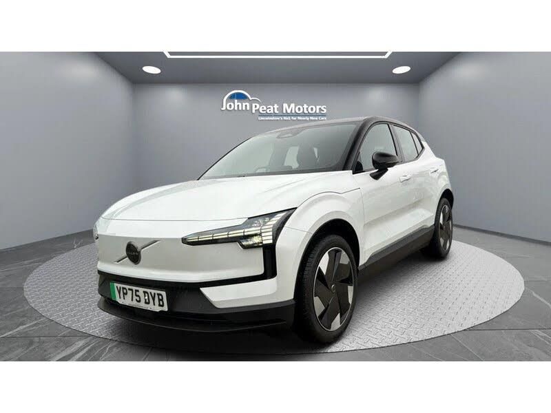 Crystal White,Textile and Nordico - Indigo, 12.3in Centre Console Portrait Touch Screen, 12v Socket - Luggage Compartment, Apple CarPlay and Android Auto - Wireless, Bluetooth Handsfree System, DAB - Digital Audio Broadcasting Radio, Google Automotive Services, Plug and Charge, Premium Sound by Harman Kardon, Recharging Port Type 2 CCS - Located in Nearside Rear Wing, Vehicle-2-Load, Volvo Car Connect, Volvo Car Connect Plus for 4 years - Unlimited Mobile Data (for In-car Apps and Vehicle Communication), Wireless-Inductive Mobile Phone Charging, Adaptive Cruise Control, Front and Rear Park Assist, Rear Park Assist Camera, Road Sign Information Display, Tyre Pressure Monitoring System, 19in Alloy Wheels - 5 Spoke Aero - Diamond Cut with 245-45 Tyres, Autofolding Heated Frameless Power Door Mirrors with Black Mirror Caps, Dual Tone Roof, Locking Wheel Nuts, Tyre Sealant Kit and Compressor, Automatic LED Headlights with Active High Beam incorporating Day Running Lights, 2-Zone Electronic Climate Control with Air Purifier, Autodimming Interior and Driver Door Mirror, Central Glovebox and Storage, Climate Pack, Fixed Lumbar Support, Flexible Load Floor, Floor Mats, Fore-Aft - Height and Backrest Recline Adjustable Driver Seat, Fore-Aft and Backrest Recline Adjustable Passenger Seat, Front Cupholders and Storage, Front Load Compartment - 19 Litres, Height and Reach Adjustable Steering Column, High Level Illumination, Power Operated Tailgate, Rain Sensor - Automatic Windscreen Wiper Activation, Removable Rear Seat Headrests, Versatile Split Folding Rear Seats - 60-40, 3-Phase On-Board Charger - 11kW, 5m 3-Phase 32amp Type 2 - Mode 3 Charge Cable, Comfort Chassis, Heat Pump, One Pedal Drive, Speed Limiter, 2x NFC - Near Field Communication - Access Cards, Airbags - Driver and Passenger, Anti-Theft Alarm including Immobiliser - Volume Sensor and Level Sensor, Child Locks - Rear Doors, Digital Key Plus - Including KeyTag, First Aid Kit, Hill Descent Control, Hill Start Assist, IC - Inflatable Curtains - Full Length, Inner Driver Seat Side Airbag, ISOFIX Attachment - Outer Rear Seats, Low Speed Exterior Sound Speaker, Passenger Airbag Cut-Off Switch, Pilot Assist, Safe Space Technology, Seatbelt Pretensioners and Load Limiters - Front and Outer Rear Seats, SIPS - Side Impact Protection System, Warning Triangle, WHIPS - Whiplash Protection System - Front Seats