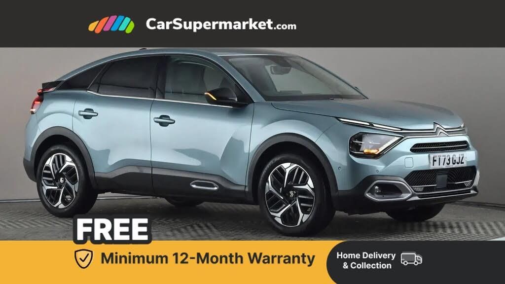 5.5 inch backlit full TFT driver's instrument cluster with LED ambient lighting,Active blind spot detection,Apple car play and Android auto,Citroen connect box emergency and assistance system,Citroen Smart Pad Support - integrated support for attaching a tablet computer for front passenger,Driver's head-up display,Electronic Power Steering (EPS),Front, rear and lateral parking sensors,In-crash braking,My Citroen Drive Plus: 10" high-resolution touchscreen user interface, controlling media, connectivity, vehicle settings + connected nav,Speed limiter,Tailgate,Voice commands,Advanced comfort suspension - double hydraulic stops on front and rear suspension,6 speakers,Bluetooth telephone and audio streaming,DAB Digital radio,3rd brake light,Automatic headlights,Body colour bumpers,Body colour door handles,Boot spoiler,C-Series badging on front wing,Dark tinted rear windows and side windows with chrome detail,Electrically heated, folding and adjustable external rear view mirrors with courtesy lighting,Electrochrome interior rear-view mirror with automatic day-night switching,Front and rear electric windows,Gloss black rear skirt,Intelligent beam headlights,LED daytime running lights in V signature,LED front fog lamps with static cornering function,LED front headlamps,Perla Nera black painted external rear view mirrors,Rain sensing automatic front windscreen wipers,Rear side wing doors,Rear wiper,Shark fin roof aerial,Welcome and goodbye lighting,12V power outlet, 1x USB Type-C socket & data connection, 1x USB Type-A socket at 1st row + 1x USB Type-A socket , 1x USB Type-C socket in 2nd row,3 rear headrests,3 seat bench in 2nd row,Alcantara and black leather effect textile seats,Boot light,Dashboard tray in front cabin,Deluxe leather steering wheel with two command blocks,Driver and passenger sunvisors with illuminated vanity mirrors,Dual zone automatic air conditioning,Electrically heated front seats,Front and rear LED interior lighting,Front head restraints,Heated steering wheel,Height adjustable driver's seat with adjustable lumbar support,Height adjustable front passenger seat,Height and reach adjustable steering wheel,Map pockets in rear of front seats,Raised centre console with armrest and two cup holders,Rear central folding armrest with cupholders and ski hatch,Single front passenger seat,Split folding rear seats,Two position boot floor,XXL storage in front cabin,High level acoustic insulation pack - C4/C4 X/e-C4 X,Safety pack plus - C4/C-Series Edition/Max,3x3 point rear seatbelts,ABS,Driver and front passenger airbags,Electric parking brake,ESP,Front seatbelt pretensioners,Hill start assist,Manual child lock in second row,Manual deactivation of front passenger airbag,Row 1 and 2 curtain airbags,Row 1 side thorax airbags,Seatbelt unfastened on the move warning,Tyre underinflation detection,Anti-theft alarm (volumetric protection),Immobiliser,Keyless entry and start,Remote locking with deadlocks,18" Bi-tone diamond-cut aeroblade alloy wheels with anti-theft locking wheel nuts,Puncture repair kit with compressor