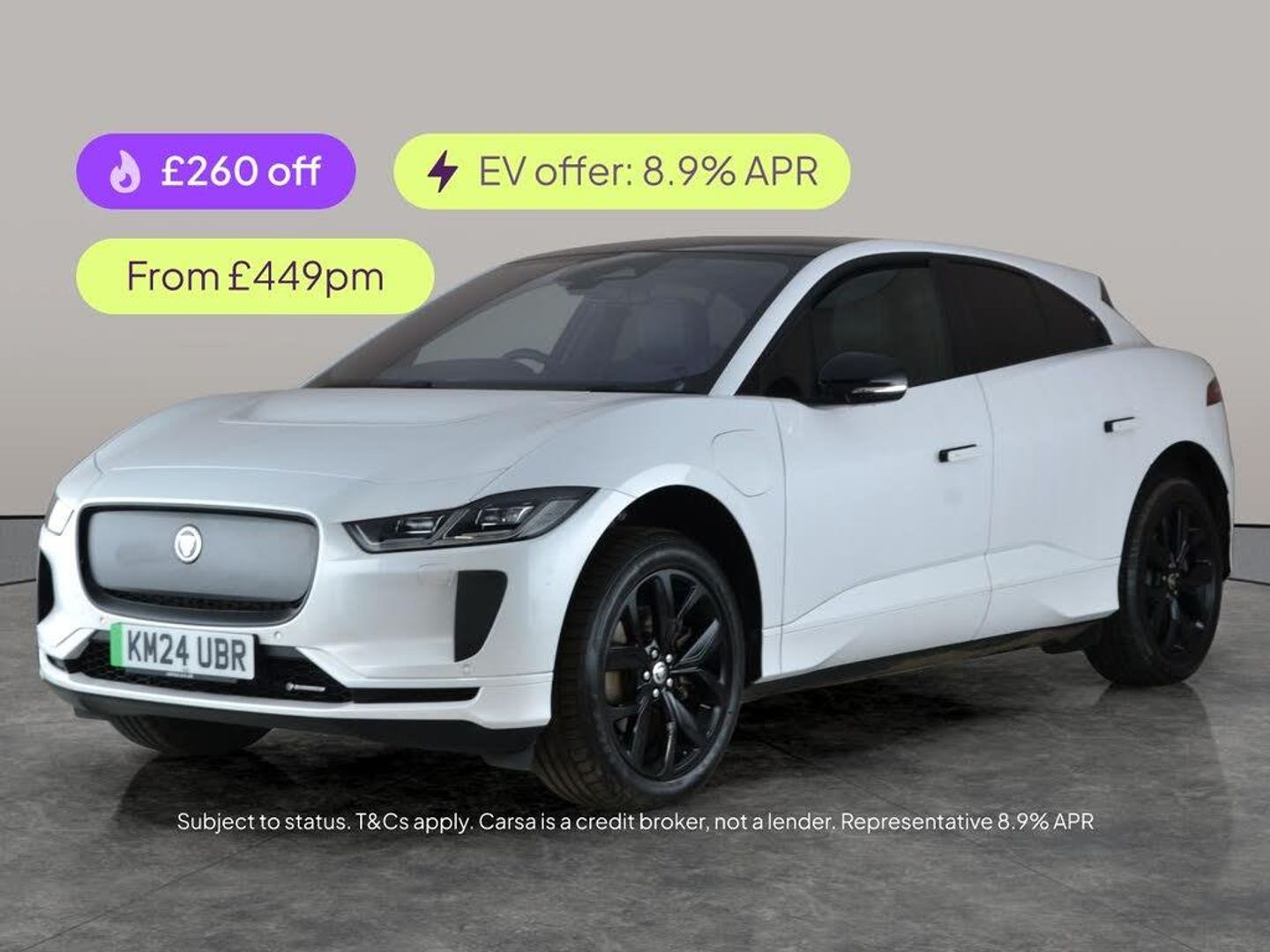 Experience the premium Jaguar I-PACE, finished in stunning white with a breathtaking panoramic roof and sunroof. Enjoy the comfort of heated and cooled leather seats, adaptive cruise control, active lane assist, and a head-up display. Stay effortlessly connected with Apple CarPlay and enjoy every journey with the Meridian upgraded sound system. Keyless entry, state-of-the-art LED headlights, and a reversing camera complete this luxurious all-electric SUV. Discover driving pleasure redefined. 2 services recorded, last serviced on 25/01/2026 at 25,073 miles. MOT to 26/03/2027. Visit our website for service history, online valuation, full vehicle specification plus multiple images. This vehicle is VAT qualifying. Any feature/option specified here is from 3rd party data. We cannot guarantee the accuracy of any specification supplied by a 3rd party. We recommend that you physically check the specification of the vehicle on site prior to purchase. This information does not form part of the buying contract. Terms & Conditions apply. We have over 2,000 cars available from our 10 national branches, check our website to see all our stock. Our Trustpilot rating is 4.4/5 with over 9,000 reviews.