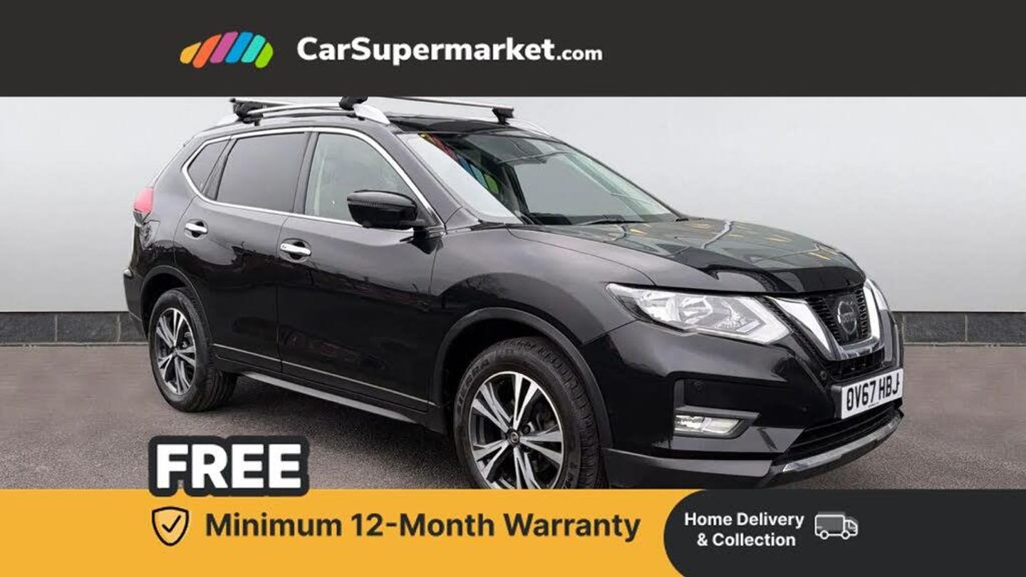5" TFT driver information centre,Around View Monitor,Attention assist,Automatic tailgate opening,Bluetooth phone integration system,Cruise control + speed limiter,Engine start button,Front and rear parking sensors,Lane departure warning system,Nissan connect sat nav system,PAS,Traffic sign recognition,Trip computer,6 speakers,Audio remote control in steering wheel,DAB Digital radio,Radio/CD,Smartphone apps,USB/aux input socket,Auto dimming rear view mirror,Automatic headlights,Automatic rain sensing wipers,Black honeycomb front grille,Body colour door mirrors,Chrome door handles,Chrome window surround,Electric folding door mirrors,Electric heated door mirrors,Front and rear power windows,Front fog lights,LED daytime running lights,Panoramic sunroof,Rear privacy glass,Satin silver roof rails,Shark fin roof aerial,3 rear headrests,60/40 split rear bench seat,Centre console storage box/armrest,Cloth upholstery,Configurable luggage board system,Dual zone climate control,Front and rear door pockets with bottle holders,Front cupholders,Height adjustable driver/front passenger seats,Height adjustable front headrests,Individual rear reading lights,Isofix child seat attachment,Leather steering wheel and gear knob,Lumbar support,Pollen filter,Rake/reach adjustable steering wheel,Rear armrest,Synthetic leather instrumental panel inserts,Synthetic leather knee pad,3 point seatbelts on all seats,ABS,Child locks on rear doors,Driver and passenger airbags,EBD + Brake Assist,Electronic parking brake,ESP + traction control,First aid kit,Front and rear curtain airbags,Hill hold assist,Intelligent emergency braking with pedestrian recognition,Seatbelt warning,Tyre pressure monitoring system,Warning triangle,Alarm,Immobiliser,Intelligent Key,Remote central locking,18" Alloy wheels,Full size spare wheel