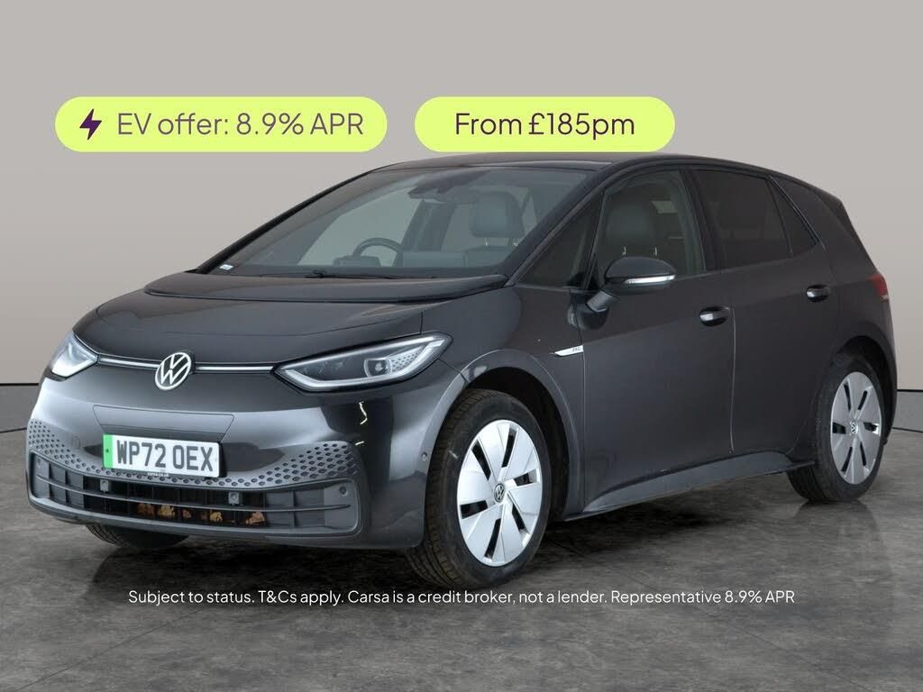 Experience the future of driving with this stylish grey Volkswagen ID.3. Enjoy the open sky through the panoramic roof and sunroof, while advanced features like Adaptive Cruise Control, Active Lane Assist, Blind Spot Assist and Lane Departure Warning System keep every journey safe and smooth. Enjoy seamless connectivity with Apple CarPlay and Bluetooth audio streaming, while LED headlights and a reversing camera make every drive effortless. This electric hatchback is ready for your next adventure. 2 services recorded, last serviced on 16/12/2025 at 31,452 miles. MOT to 15/12/2026. Visit our website for service history, online valuation, full vehicle specification plus multiple images. This vehicle is VAT qualifying. Any feature/option specified here is from 3rd party data. We cannot guarantee the accuracy of any specification supplied by a 3rd party. We recommend that you physically check the specification of the vehicle on site prior to purchase. This information does not form part of the buying contract. Terms & Conditions apply. We have over 2,000 cars available from our 10 national branches, check our website to see all our stock. Our Trustpilot rating is 4.4/5 with over 9,000 reviews.