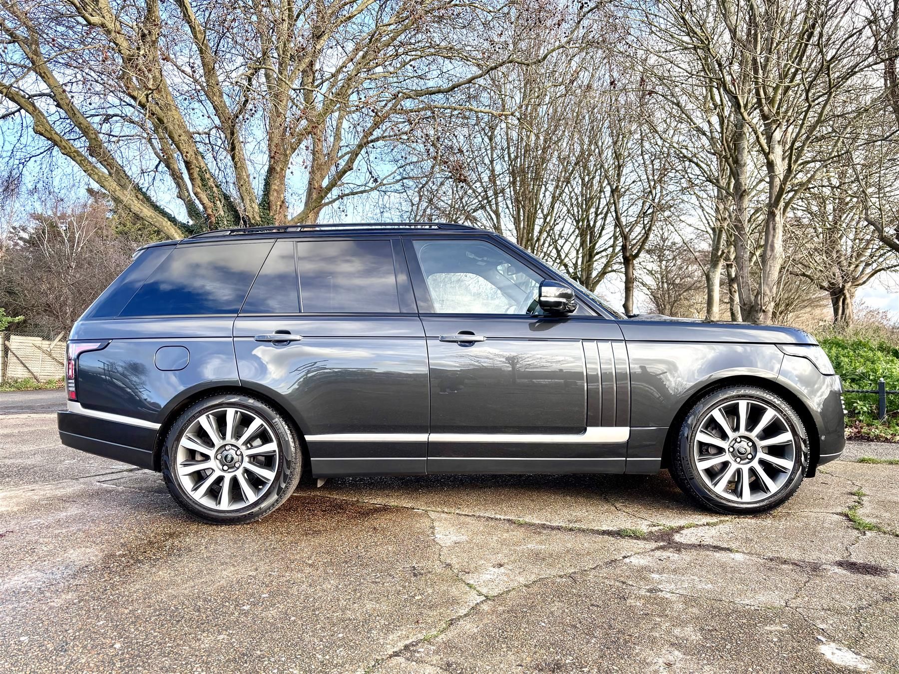 2016 Model Year RANGE ROVER 4.4 SD V8 Autobiography SUV 5dr Diesel Auto 4WD Euro 6 (s/s) (339 ps). Carpathian Grey Metallic with Ebony Black Leather . GPS NAVIGATION. PANORAMIC SUNROOF. DIGITAL TV . REVERSE CAMERA . BLUETOOTH MUSIC STREAMING . BLUETOOTH TELEPHONE CONNECTIVITY. MASSAGE SEATS . HEATED AND COOLED SEATING. 20 INCH ALLOYS. PRIVACY GLASS. 20in Brake Calipers, 21in Alloy Wheels - 10 Spoke Diamond Turned Finish Style 5, 360 Degree Parking Aid, 360 Degree Surround Camera System, ABS - Anti Lock Braking System, ASL - Active Speed Limiter, ATPC - All Terrain Progress Control, Active Rear Locking Differential, Adaptive Cruise Control with Queue Assist and Intelligent Emergency Braking, Adaptive Dynamics, Adjustable - Auto Dimming - Heated - Power Fold Memory Exterior Mirrors with Approach Lamps, Auto Dimming Rear View Mirror, Autobiography Badge, Automatic High Beam Assist, Auxiliary Power Sockets, Blind Spot Assist with Reverse Traffic Detection, Blind Spot Monitor with Reverse Traffic Detection, Bluetooth Phone Connection, Body Coloured Door Handles, CBC - Cornering Brake Control, Centre Mounted Stop Light, Customer Configurable Autolock - Doors Lock on Driveaway, Customer Configurable Interior Mood Lighting, Customer Configurable Single Point Entry, DAB - Digital Audio Broadcast, DSC - Dynamic Stability Control, Daytime Running Lights, Driver Condition Monitor, Driver and Passenger Airbags, Driver and Passenger Armrest, Driver and Passenger Twin Blade Sunvisor with Illuminated Vanity Mirror, Dual View Touchscreen, EBA - Electronic Brake Assist, EBD - Electronic Brake-Force Distribution, EPAS - Electronic Power Assisted Steering, ESP - Electronic Stability Program, ETC - Electronic Traction Control, Electric Windows - Front and Rear, Electrical Towing Preparation, Electronic Cross Linked Air Suspension, Embossed Autobiography Script on Centre Rear Squab, Extended Veneer Pack, Exterior Standard Bumper Pack, Follow Me Home Lighting, Four Zone Climate Control, Front Centre Console Cooler Compartment, Front Fog Lights, Front and Rear Premium Carpet Mats, Front Row Leather Covered Seat-back Pockets, Front and Rear Cupholders, Front and Rear Park Distance Sensors with Visual Display, Front and Rear Recovery Hooks, Gesture Tailgate, HDC - Hill Descent Control, Hazard Lights Under Heavy Braking, Heated Windscreen - Laminated, ISOFIX Child Seat Anchor Points, Illuminated Aluminium Tread Plates with Unique Autobiography Script, InControl Apps, Intrusion Sensor, Keyless Entry with Push Start Button, Lane Keep Assist, Loadspace Anchor Points, Loadspace Compartment Light, Loadspace Cover - Hinged with Hardcover, Locking Wheel Nuts, Meridian Digital Surround Sound System, Non Smokers Pack, Perimetric and Volumetric Alarm with Engine Immobilisation, Power Operated Child Locks, Pro Services for Warranty Period, RSC - Roll Stability Control, Rain Sensing Windscreen Wipers, Rear Fog Lights, Rear Lights - LED, Full size Alloy Spare Wheel, Remote Park Heat with Timed Climate, Roof - Body Coloured, Seats - Semi Aniline Leather Style 19, Secure Glove Box Stowage, Sliding Panoramic Roof, Soft Door Close, Steering Wheel - Heated, TPMS - Tyre Pressure Monitoring System, Terrain Response, USB Sockets, Veneer - Grand Black Lacquer, Xenon Headlamps with LED Signature Lighting, and an