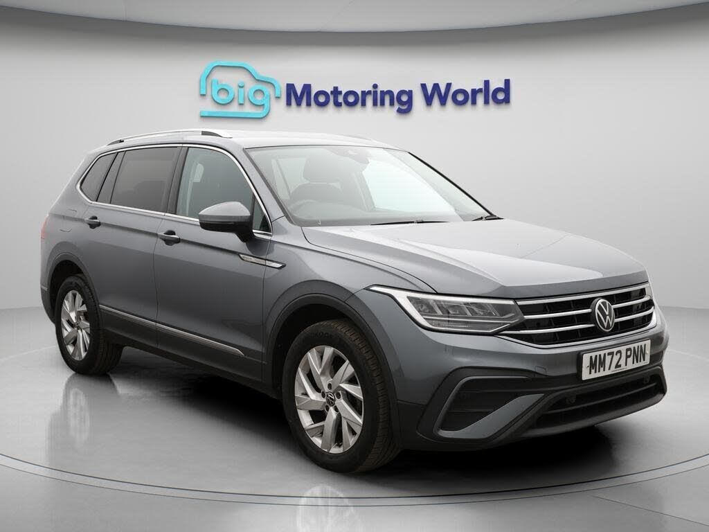 Third Row Seats,Apple CarPlay-Our Volkswagen Tiguan Allspace comes with optional extras worth £690. Specification includes a range of fantastic features including Third Row Seats, Apple CarPlay, Adaptive Cruise Control, Lane Assist, Android Auto, Satellite Navigation, Privacy Glass, Wireless Phone Charging, Internet, Bluetooth Specification information is supplied by CAPHPI and may vary to the actual car. This data does not form any part of a buying contact. Please check specification prior to purchase in-store. The MOT is valid until November 2026, visit bigmotoringworld.co.uk for more photos, a 360 tour, service history and a free HPI report.Were BIG on peace of mind and this Grey Volkswagen Tiguan Allspace has completed our comprehensive 200 point inspection and passed all checks. Its ready for you to drive away with immediate collection in-store. We include a 90-day warranty as standard plus an option to extend for up to 3 years.Reserve this car exclusively for you, safely and securely at bigmotoringworld.co.uk, with a fully refundable £99 deposit. Test drive before you buy, with no commitment, no hassle and a completely haggle free experience. Still searching and want to see thousands more cars? We are BIG on choice with over 8000 cars to choose from.Visit our award winning web site bigmotoringworld.co.uk.Were Big Motoring World and were BIG on what matters to you.