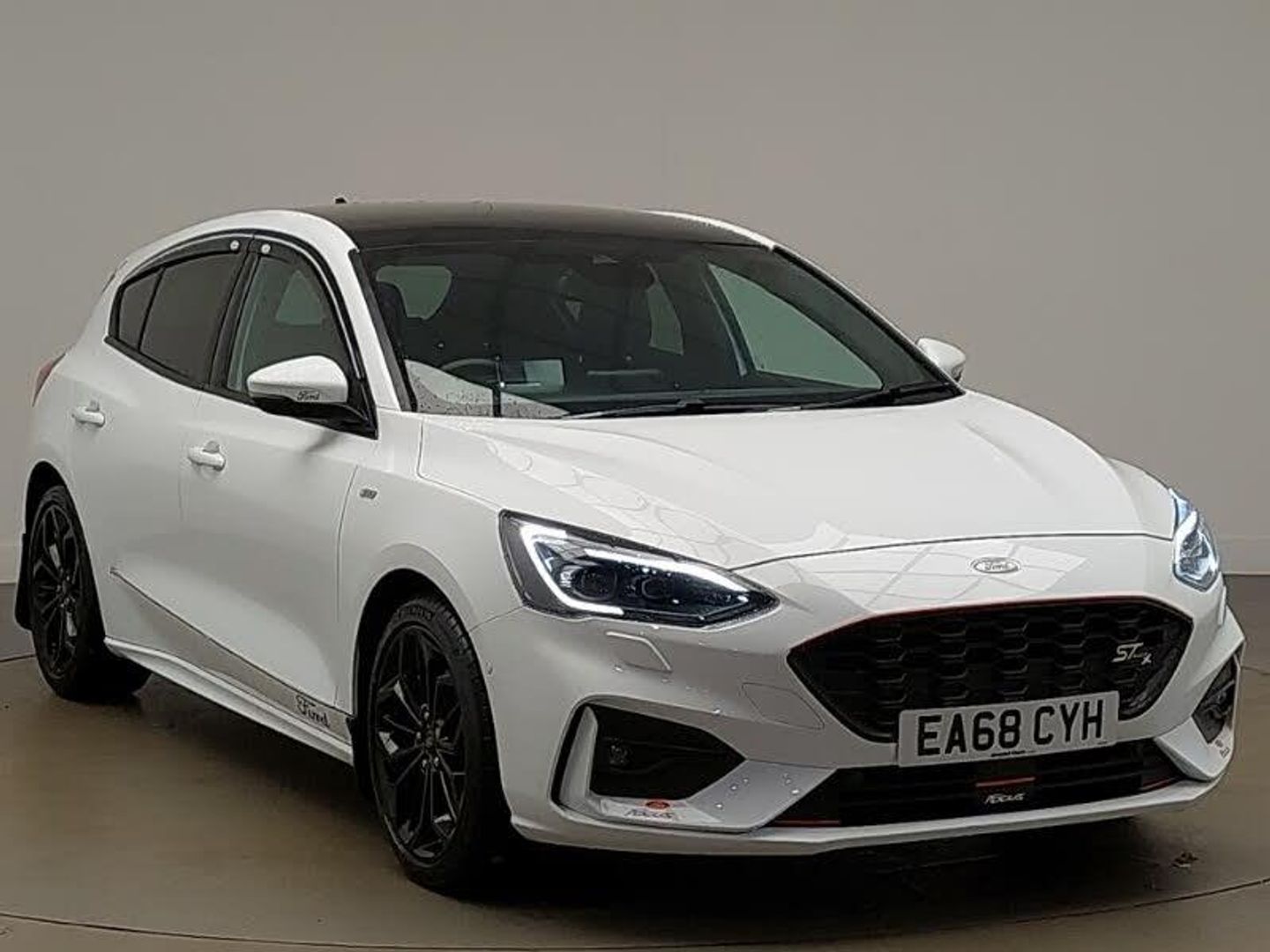 4" TFT coloured cluster screen, Eco mode, Ford SYNC 3 nav system with DAB radio, 8" colour touch screen, voice control, app link, Apple car play/Android auto and 4.2" TFT coloured cluster, Front and rear parking sensors, Lane keeping aid with lane departure warning, Ford pass connect, 'Quickclear' heated windscreen/heated washer jets, Rear privacy glass, ST-Line upper and lower grille with full body styling kit and wing badges, Unique door and instrument panel inserts, Alloy finish pedals, Dual zone electronic air temperature control, Heated front seats, Part leather upholstery with red stitching, Auto hold function, Pre collision assist with autonomous emergency braking and pedestrian/cyclist detection, Red brake calipers, Keyless start with 'Ford Power' starter button, MyKey system, Thatcham category 1 alarm, 18" 5x2 spoke matt black machined finish alloy wheels
