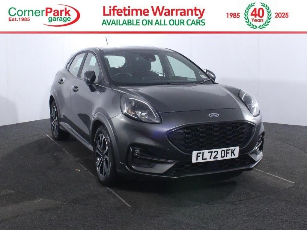 1 Owner. Full service history with 4 services. Last serviced at 64,215 miles in February 2026. This 2023 Ford Puma 1.0T EcoBoost MHEV ST-Line is a sporty, efficient small SUV that punches above its weight with sharp handling and hybrid assistance. Finished in Magnetic with 17-inch 5x2-spoke black machined alloy wheels, ST-Line body styling kit, large body colour rear spoiler and unique front bumper/diffuser, it delivers a dynamic, youthful appearance. The 1.0-litre EcoBoost mild-hybrid petrol engine (125 ps) with 6-speed manual gearbox offers peppy performance and an official combined MPG of 52.3. Inside, the ST-Line cabin blends sportiness and practicality with sports-style front seats, deluxe headliner, aluminium gear knob, black Sensico handbrake with red stitching and ambient LED courtesy lighting. Ford SYNC 3 navigation with touchscreen, DAB, Bluetooth and USB connectivity provides solid infotainment, while manual air conditioning, premium centre console with sliding armrest/2 cupholders/12V/USB, front/rear electric windows and the Ford MegaBox extended bootspace maximise usability. Rear parking sensors and 12.3-inch full digital instrument cluster aid everyday driving. Advanced driver assistance includes Pre-Collision Assist with Autonomous Emergency Braking (pedestrian/cyclist detection), Lane Keeping Aid with Lane Departure Warning, Intelligent Speed Assistance, Post Collision Braking, ESC with Hill Start Assist and Selectable Drive Modes (Normal, Eco, Sport, Slippery, Trail). With Quickclear heated windscreen, power-foldable heated mirrors with puddle lamps, rain-sensing wipers, projector LED headlights with daytime running lights and tyre pressure monitoring, this Puma ST-Line offers sporty appeal, strong hybrid economy and comprehensive safety in a compact SUV package. All our cars are put through strict quality checks, and this one passed them all. For added peace of mind, we will ensure this will have a minimum of 6 months MOT where applicable. Our quality standards extend to your vehicle ownership. Finance is quick and easy, with a multitude of finance options, we can provide a deal tailored to suit you. Delivery available, all our cars are available online or in store, and any car can be delivered straight to your front door, or to your nearest branch. This car has been price-checked against the competition, and will be the cheapest available, or we will refund the difference! See website for terms. Search Corner Park to find us. We are based in the heart of South Wales, Swansea (M4 J42). Pop in or give us a call today!