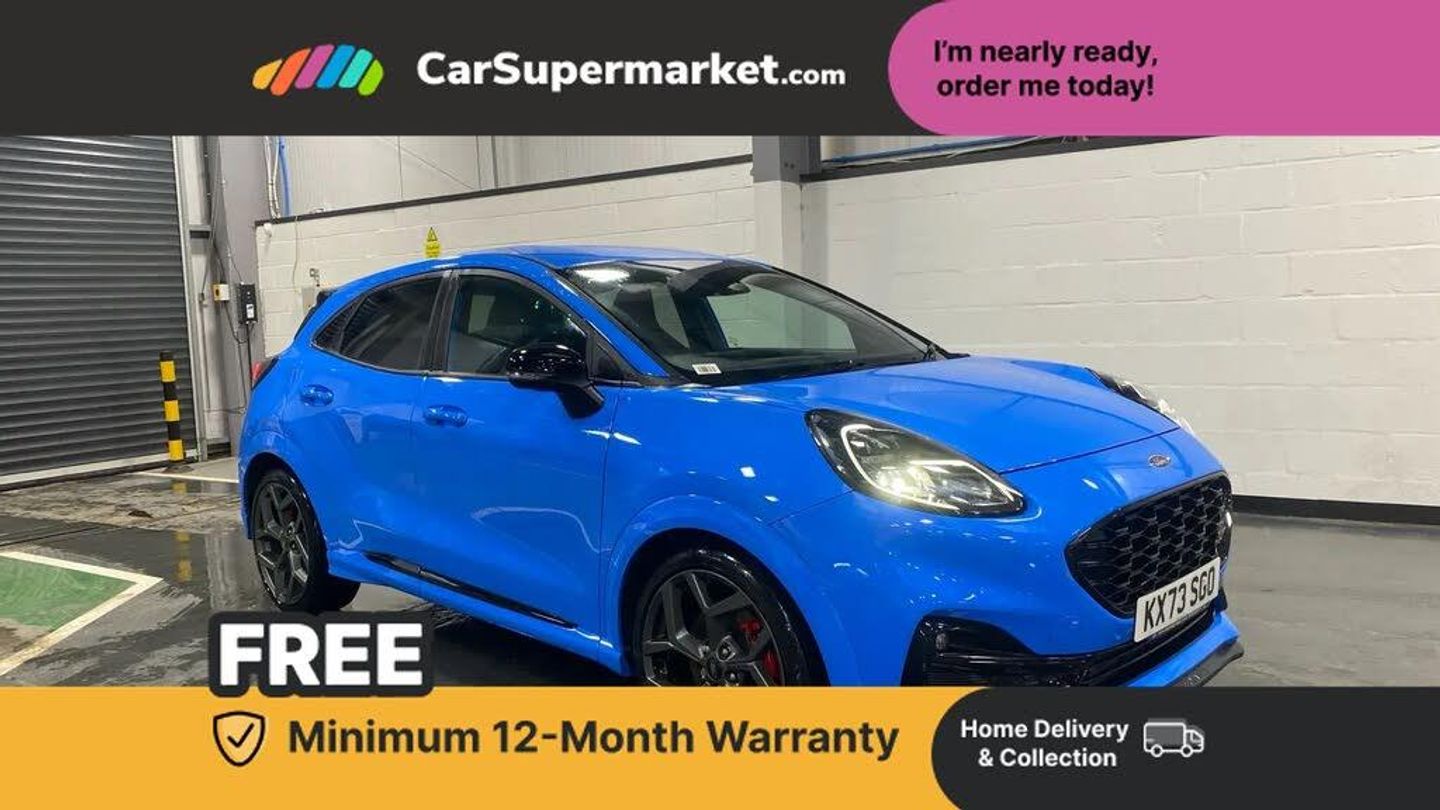 Cruise control with Intelligent speed assist,Driver impairment monitor,Emergency call service,Ford easy fuel,Front and rear parking sensors,Full digital 12.3" instrument cluster,Lane keeping aid with lane departure warning,Power assist steering,Selectable drive modes (normal, sport, eco, track),Speed sign recognition,Engine sound enhancer,ST suspension,Automatic headlights with auto high beam,Automatic rain sensing wipers,Dual chrome exhaust,Fixed LED signature headlamps,Front fog lamps,LED daytime running lights,LED rear lamps,Power foldable heated door mirrors with puddle lamps and puma logo protection,Privacy glass to side rear windows and tailgate glass,Quickclear heated windscreen,Rear side wing doors,Rear wiper,ST scuff plates,Third brake light,Unique ST body styling kit including contrast black roof, large rear spoiler and wing mirrors, plus Ford Performance embossed splitter,3 seat bench in 2nd row,Alloy sports pedals,Centre console with armrest and stowage,Ford megabox extended bootspace,Ford Performance sensico partial premium leather upholstery with metal grey stitching,Front and rear head restraints,Manual 6 way driver seat adjust with lumbar adjustment,Manual 6 way passenger seat with lumbar seat adjustment,Single front passenger seat,ST flat bottomed steering wheel with metal grey stitching,ST logo projection,Unique ST gear shift knob,Wireless charging pad with electronic air temperature control (EATC),B&O Premium Audio system + Ford SYNC 3 navigation pack - Puma,Winter pack - Puma,3 rear seatbelts,Child safety lock,Electronic stability control (ESC) and hill start assist,Pedestrian/cyclist detection & post-collision braking,Pre collision assist system,Red brake calipers,Tyre pressure monitoring system (TPMS),Keyless entry and power start button,Thatcham alarm,Carbon look interior deco spears,19" 5 Spoke magnetite dark finished alloy wheel,Tyre inflation kit,Handsfree Power Tailgate