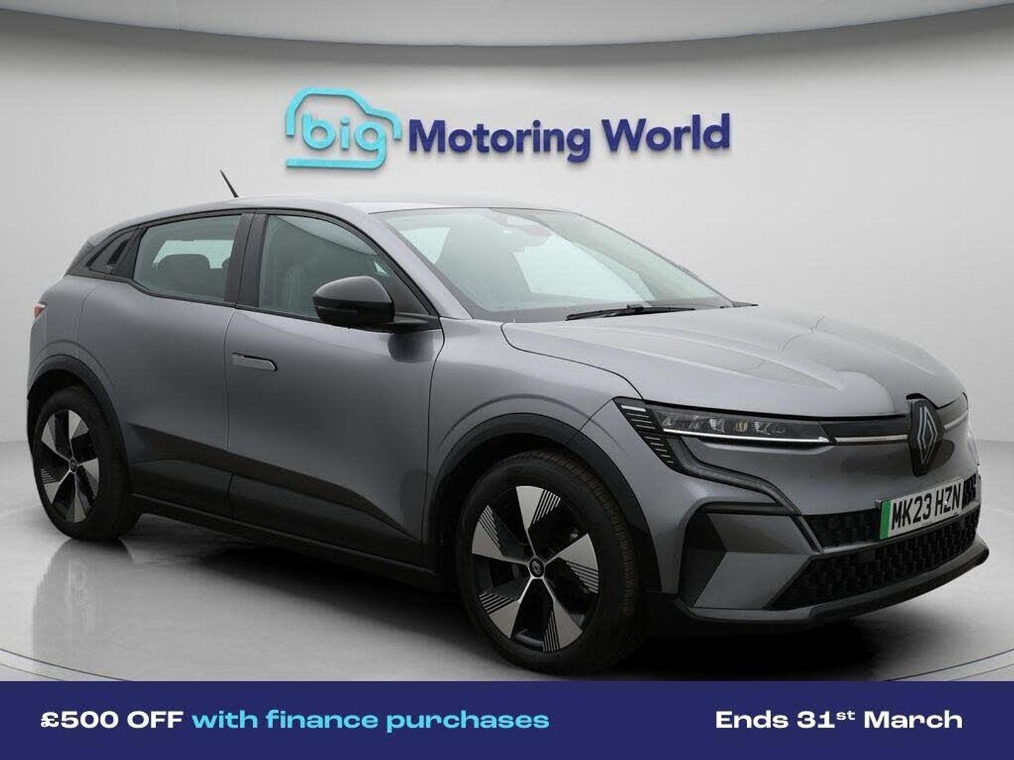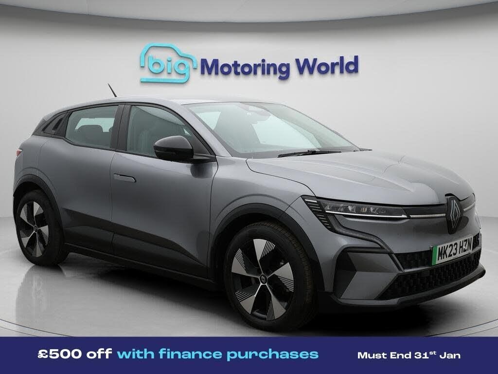 £500 towards your finance depo-Our Renault Megane E-Tech is finished in Grey. Specification includes a range of fantastic features including £500 towards your finance deposit, 18'' alloy wheels, Apple CarPlay, Adaptive Cruise Control, Android Auto, Heated Seats, Rear View Camera, Heated Steering Wheel, Bluetooth, Parking Sensors Specification information is supplied by CAPHPI and may vary to the actual car. This data does not form any part of a buying contact. Please check specification prior to purchase in-store. The MOT is valid until February 2027, visit bigmotoringworld.co.uk for more photos, a 360 tour, service history and a free HPI report.Were BIG on peace of mind and this Grey Renault Megane E-Tech has completed our comprehensive 200 point inspection and passed all checks. Its ready for you to drive away with immediate collection in-store. We include a 90-day warranty as standard plus an option to extend for up to 3 years.Reserve this car exclusively for you, safely and securely at bigmotoringworld.co.uk, with a fully refundable £99 deposit. Test drive before you buy, with no commitment, no hassle and a completely haggle free experience. Still searching and want to see thousands more cars? We are BIG on choice with over 8000 cars to choose from.Visit our award winning web site bigmotoringworld.co.uk.Were Big Motoring World and were BIG on what matters to you.