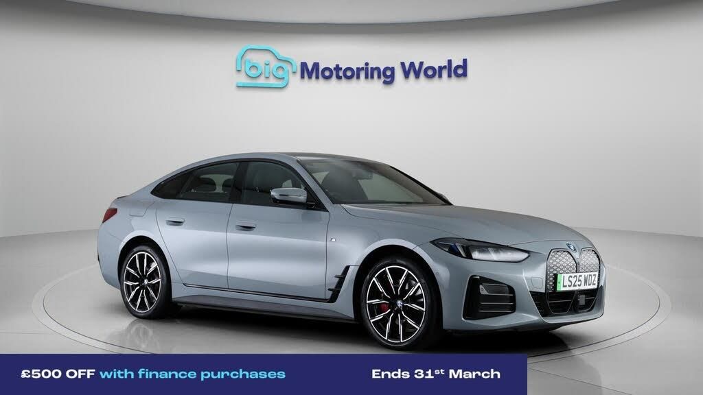 M SPORT PRO PACK,BMW Tech Pack-Our BMW i4 comes with optional extras worth £8,700. Specification includes a range of fantastic features including M SPORT PRO PACK, BMW Tech Pack, Head up Display, 19'' Alloy wheels, Leather Seats, Adaptive Cruise Control, Harman Kardon Speakers, Connected Package Professional, M Sport Exterior Styling Pack, M Sport Bodykit Specification information is supplied by CAPHPI and may vary to the actual car. This data does not form any part of a buying contact. Please check specification prior to purchase in-store. The MOT is valid until April 2028, visit bigmotoringworld.co.uk for more photos, a 360 tour, service history and a free HPI report.Were BIG on peace of mind and this Grey BMW i4 has completed our comprehensive 200 point inspection and passed all checks. Its ready for you to drive away with immediate collection in-store. We include a 90-day warranty as standard plus an option to extend for up to 3 years.Reserve this car exclusively for you, safely and securely at bigmotoringworld.co.uk, with a fully refundable £99 deposit. Test drive before you buy, with no commitment, no hassle and a completely haggle free experience. Still searching and want to see thousands more cars? We are BIG on choice with over 8000 cars to choose from.Visit our award winning web site bigmotoringworld.co.uk.Were Big Motoring World and were BIG on what matters to you.
