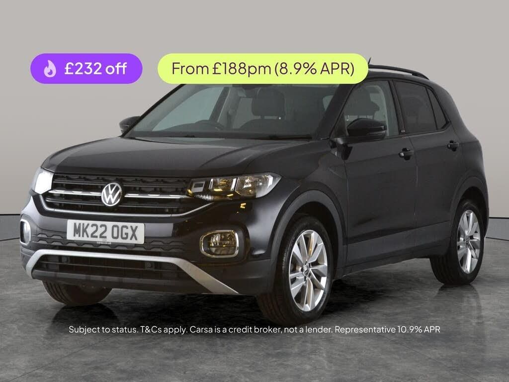 Step into style with this sleek black Volkswagen T-Cross. Enjoy tech-savvy features like Apple CarPlay and built-in Sat Nav for seamless journeys, while Adaptive Cruise Control and Blind Spot Assist keep you confident and safe. Parking is a breeze with front and rear sensors, and you'll ride in comfort on striking 17in alloy wheels. Stay cool with air conditioning and connected via Bluetooth. A brilliant choice for those who value practicality and advanced features in a smart SUV package. 3 services recorded, last serviced on 04/02/2026 at 26,160 miles. MOT to 05/02/2027. Visit our website for service history, online valuation, full vehicle specification plus multiple images. This vehicle is VAT qualifying. Any feature/option specified here is from 3rd party data. We cannot guarantee the accuracy of any specification supplied by a 3rd party. We recommend that you physically check the specification of the vehicle on site prior to purchase. This information does not form part of the buying contract. Terms & Conditions apply. We have over 2,000 cars available from our 10 national branches, check our website to see all our stock. Our Trustpilot rating is 4.4/5 with over 9,000 reviews.
