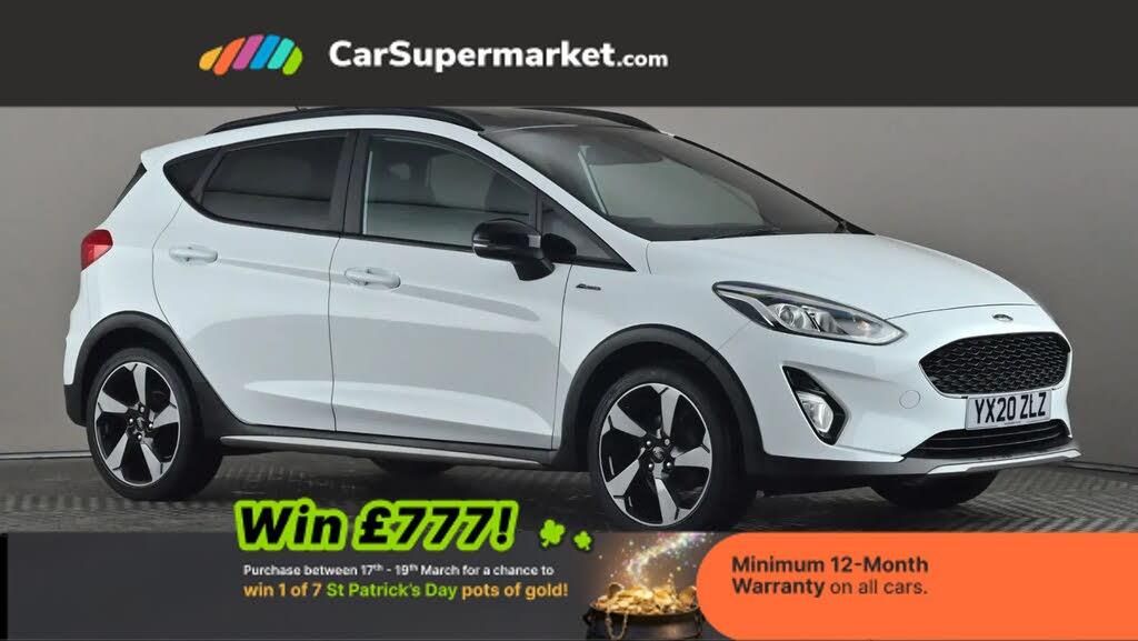8" touch screen,Bluetooth system,Drive mode selector,Electric power steering,Ford easy fuel,Trip computer,Rough road suspension with increased ride height adjust,2 USB ports,Auxiliary input socket,DAB Digital radio,Steering wheel mounted controls,Active logo front door thershold plates,Auto dimming rear view mirror,Black roof rails,Body colour bumpers,Body colour door handles,Body colour rear spoiler,Chrome beltline trim,Chrome door handles,Chrome lower window surround,Cornering front fog lights,Electric front windows/one touch facility,Electric rear windows,LED Night signature to rear lights,LED rear lights,Privacy glass,Quickclear heated windscreen,Rain sensing wipers and auto dimming rear view mirror,Rear privacy glass,Rear wiper,Rugged body styling kit with active front wing badges,Shadow black contrast roof and door mirrors,Tinted glass,Upper front grille chrome surround,12V Accessory socket in centre console,3 spoke leather trimmed steering wheel with audio control,60/40 split folding rear seat,Adjustable head restraints,Ambient lighting,Black headlining,Boot carpet,Centre console with armrest and illuminated cupholders,Chrome inner door handles,Cloth upholstery,Drivers and Passenger lumbar support,Footwell illumination,Front map reading lights,Front seat and rear pockets,Height adjustable driver's seat,Illuminated glovebox,Leather gear knob,Leather trimmed handbrake handle,Load area light,Manual air conditioning,Overhead console with sunglasses holder,Pollen filter,Rake/reach adjustable steering wheel,Rear centre head restraint,Driver assistance pack - Fiesta/Titanium/Titanium X/Active B+O/Active X/ST-Line X,NCAP Pack - Fiesta,Yellow pack - Fiesta,3 point seatbelts on all rear seats,ABS+EBA,Curtain airbags,Driver and passenger airbags,Drivers knee airbag,Electronic stability control with hill start assist,Front passenger airbag deactivation,Front side airbags,Seatbelt warning,Tyre pressure monitoring system,MyKey system,Remote central locking & engine immobiliser,Thatcham Cat.1 alarm,17" 5 spoke alloy wheels with shadow black machined finish,Tyre repair kit