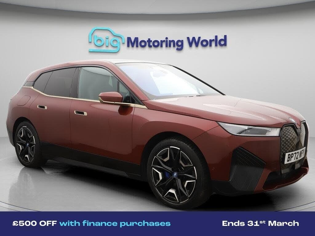 All Wheel Drive,Panoramic Roof-Our BMW iX comes with optional extras worth £3,185. Specification includes a range of fantastic features including All Wheel Drive, Panoramic Roof, Sun Protection Pack, Head up Display, Apple CarPlay, Harman Kardon Speakers, Connected Package Professional, Privacy Glass, Heated Seats, Rear View Camera Specification information is supplied by CAPHPI and may vary to the actual car. This data does not form any part of a buying contact. Please check specification prior to purchase in-store. The MOT is valid until January 2027, visit bigmotoringworld.co.uk for more photos, a 360 tour, service history and a free HPI report.Were BIG on peace of mind and this Red BMW iX has completed our comprehensive 200 point inspection and passed all checks. Its ready for you to drive away with immediate collection in-store. We include a 90-day warranty as standard plus an option to extend for up to 3 years.Reserve this car exclusively for you, safely and securely at bigmotoringworld.co.uk, with a fully refundable £99 deposit. Test drive before you buy, with no commitment, no hassle and a completely haggle free experience. Still searching and want to see thousands more cars? We are BIG on choice with over 8000 cars to choose from.Visit our award winning web site bigmotoringworld.co.uk.Were Big Motoring World and were BIG on what matters to you.