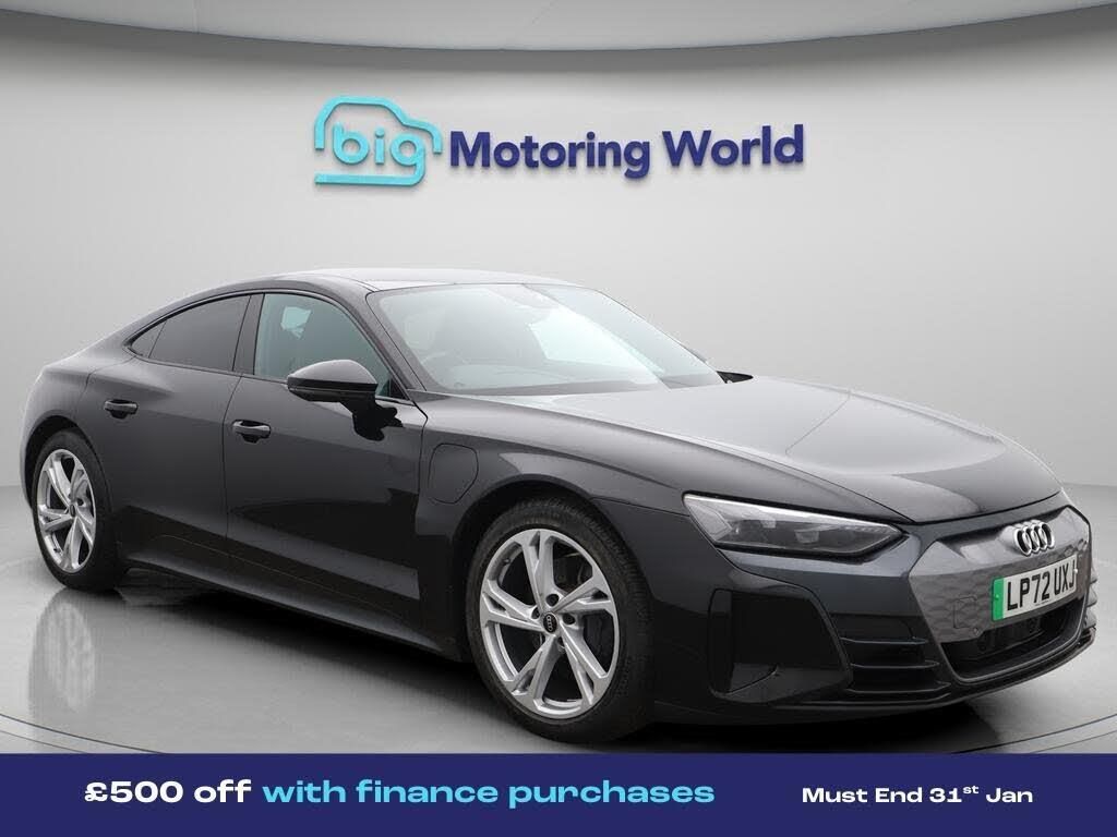 £500 towards your finance depo-Our Audi e-tron GT is finished in Black. Specification includes a range of fantastic features including £500 towards your finance deposit, Panoramic Roof, All Wheel Drive, Digital Cockpit, Privacy Glass, Heated Seats, Wireless Phone Charging, Virtual Cockpit, Rear View Camera, Bluetooth Specification information is supplied by CAPHPI and may vary to the actual car. This data does not form any part of a buying contact. Please check specification prior to purchase in-store. The MOT is valid until January 2027, visit bigmotoringworld.co.uk for more photos, a 360 tour, service history and a free HPI report.Were BIG on peace of mind and this Black Audi e-tron GT has completed our comprehensive 200 point inspection and passed all checks. Its ready for you to drive away with immediate collection in-store. We include a 90-day warranty as standard plus an option to extend for up to 3 years.Reserve this car exclusively for you, safely and securely at bigmotoringworld.co.uk, with a fully refundable £99 deposit. Test drive before you buy, with no commitment, no hassle and a completely haggle free experience. Still searching and want to see thousands more cars? We are BIG on choice with over 8000 cars to choose from.Visit our award winning web site bigmotoringworld.co.uk.Were Big Motoring World and were BIG on what matters to you.