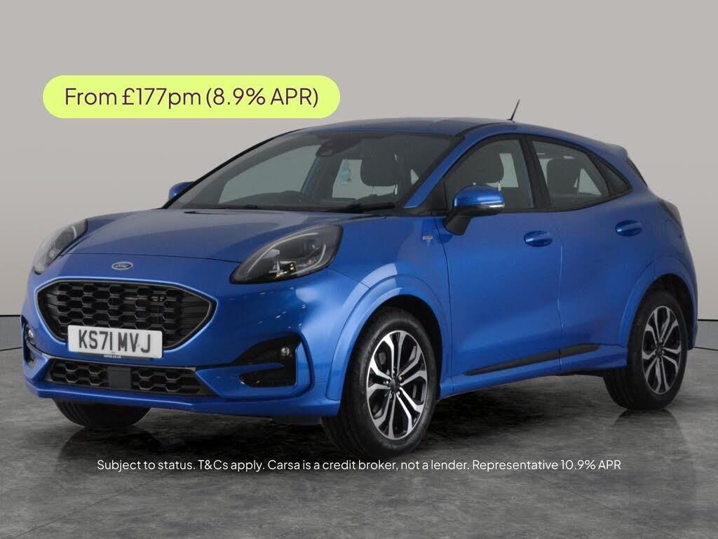 Discover the stylish blue Ford Puma ST-Line, featuring eye-catching 17in alloy wheels and a sporty interior with ebony cloth seats and red stitching. Enjoy seamless journeys with Sat Nav and Ford SYNC3 connectivity. Stay safe and confident with Lane Departure Warning System, Cruise Control, and selectable Driving Modes. This Petrol Hybrid manual SUV is your perfect blend of fun and efficiency. Test drive it today and feel the difference. 2 services recorded, last serviced on 04/02/2026 at 26,967 miles. MOT to 30/01/2027. Visit our website for service history, online valuation, full vehicle specification plus multiple images. This vehicle is VAT qualifying. Any feature/option specified here is from 3rd party data. We cannot guarantee the accuracy of any specification supplied by a 3rd party. We recommend that you physically check the specification of the vehicle on site prior to purchase. This information does not form part of the buying contract. Terms & Conditions apply. We have over 2,000 cars available from our 10 national branches, check our website to see all our stock. Our Trustpilot rating is 4.4/5 with over 9,000 reviews.