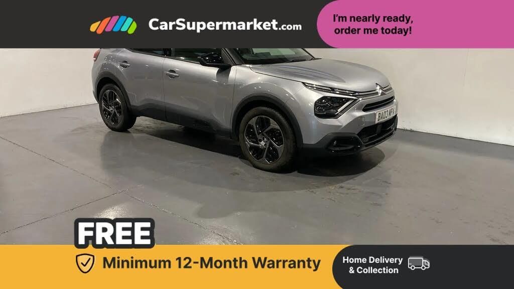 10" high resolution touchscreen user interface, controlling media, connectivity and vehicle settings,5.5 inch backlit full TFT driver's instrument cluster with LED ambient lighting,Apple car play and Android auto,Citroen connect box emergency and assistance system,Citroen connect nav with real time traffic and speedcam,Citroen Smart Pad Support - integrated support for attaching a tablet computer for front passenger,Cruise control + speed limiter,Driver's head-up display,Electronic Power Steering (EPS),In-crash braking,Rear parking sensors,Tailgate,Top rear vision reversing camera,Voice commands,Advanced comfort suspension - double hydraulic stops on front suspension and single on rear suspension,6 speakers,Bluetooth telephone and audio streaming,DAB Digital radio,3rd brake light,Automatic headlights,Body colour bumpers,Body colour door handles,Boot spoiler,Electrically heated, folding and adjustable external rear view mirrors,Front and rear electric windows,Gloss black rear skirt,LED daytime running lights in V signature,LED front fog lamps with static cornering function,LED front headlamps,Perla Nera black painted external rear view mirrors,Rain sensing automatic front windscreen wipers,Rear side wing doors,Rear wiper,Roof aerial,Standard interior rear-view mirror with manual day-night switching,Welcome and goodbye lighting,12V power outlet, 1x USB Type-C socket charging & data connection and 1x USB Type-A socket in 1st row and 1x USB Type-A socket charging in 2nd row,3 rear headrests,3 seat bench in 2nd row,Boot light,Chevrons cloth and leather effect textile seat upholstery,Dashboard tray in front cabin,Driver and passenger sunvisors with illuminated vanity mirrors,Dual zone automatic air conditioning,Front and rear LED interior lighting,Front head restraints,Grained leather steering wheel with two command blocks,Height adjustable driver's seat with adjustable lumbar support,Height adjustable front passenger seat,Height and reach adjustable steering wheel,Map pockets in rear of front seats,Raised centre console with armrest and two cup holders,Single front passenger seat,Split folding rear seats,Two position boot floor,High level acoustic insulation pack - C4/C4 X/e-C4 X,3x3 point rear seatbelts,ABS,Driver and front passenger airbags,Electric parking brake,ESP,Front seatbelt pretensioners,Hill start assist,Manual child lock in second row,Manual deactivation of front passenger airbag,Row 1 and 2 curtain airbags,Row 1 side thorax airbags,Seatbelt unfastened on the move warning,Tyre underinflation detection,Anti-theft alarm (volumetric protection),Immobiliser,Remote locking with deadlocks,18" Bi-tone painted aeroblade alloy wheels with anti-theft locking wheel nuts,Puncture repair kit with compressor