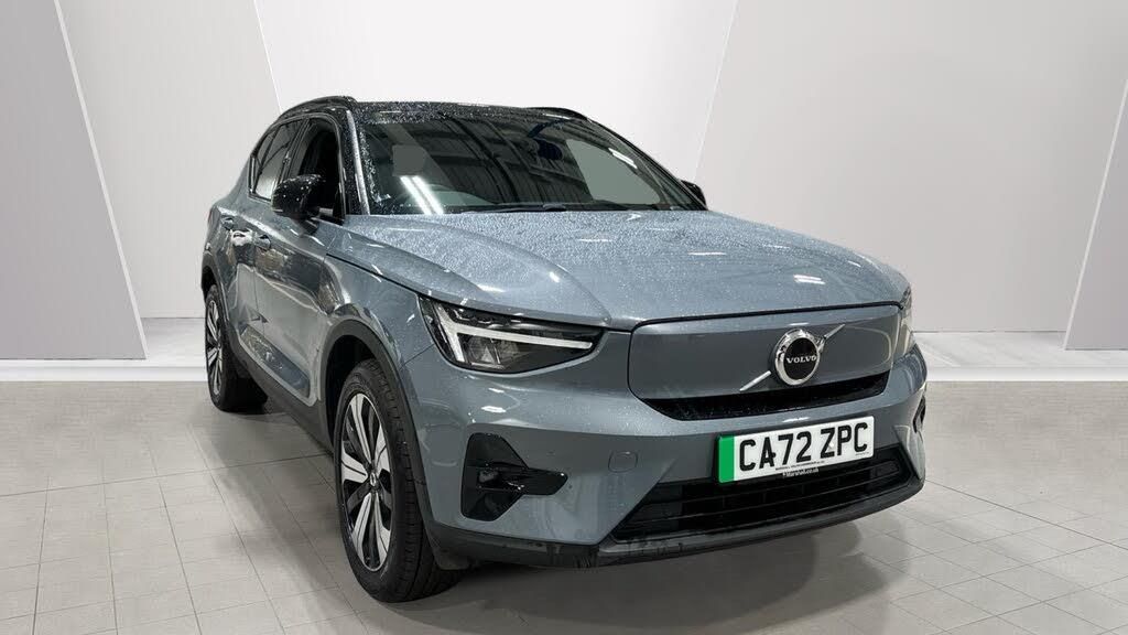Thunder Grey, 19? 5-Double Spoke Black Diamond Cut, Power Driver's Seat with Memory, Power Passenger Seat, Heated front seats, Heated Rear Seats, Power Operated Tailgate, BLIS? and Cross Traffic Alert, Park assist. rear and front, Apple CarPlay, Please call on 0116 275 8800, Sculpted gear shift, Charcoal interior inserts, Roof top in contrast colour. Black Stone, Door mirror covers. Black Stone, Topography decor, Fusion Microtech/Textile upholstery, Sport Textile Mats. Charcoal, Rear Footwell and Side Step Illumination, Shift-by-wire single speed transmission. AWD, 2-Zone Electronic Climate Control, Afterrun parking climate, Passenger Airbag Cut Off Switch, Dual Stage Driver and Passenger Airbags, Heat Pump (Enhanced Cabin Heating and Cooling Efficiency with Optimal Vehicle Range), Driver Knee Airbag, Charcoal headlining, Road Sign Information, Driver Alert Control with Lane Keeping Aid, Colour Co-ordinated Front Covered Grille and Surround, Heated grill emblem, LED headlights, Rear fog lights switched off when trailer fog lights are running, Front LED Foglights, 12-inch driver display, Google Assistant. Google Maps and Google Play Store - included for 4 years, Pilot Assist (up to 80mph) Adaptive Cruise Control with Distance Alert & Queue Assist, Pilot Assist, Adjustable Speed Limiter, Volvo Cars App remote functions - included for 4 years, DAB (Digital Audio Broadcasting) Radio, High Performance Sound, Autofolding Heated Power Door Mirrors, Wireless/Inductive Mobile Phone Charging, Automatic door locking, Remote key, Small storage. front, Double locking, Tinted rear windows, BLIS? and Cross Traffic Alert, Anti-theft Alarm including Immobiliser. Volume Sensor and Level Sensor, Power Child Locks, Power Operated Tailgate, Keyless Drive (includes Keyless Entry and Keyless Start), CleanZone Air Quality System and Pollen Filter, GloveBox Bag Hook, Digital owners manual, Power Driver's Seat with Memory, Power Passenger Seat, Heated front seats, Heated Rear Seats - Outer Positions, Fixed Foldable Rear Headrests, 5 seats, Mechanical release second seat row, Manual cushion extensions. driver and passenger, 4-Way Lumbar Support, Load Protection Net, Foldable load floor with cargo divider and grocery bag holder, Rear centre armrest, i-Size/ISOFIX mounting points. front seat, Illuminated Vanity Mirrors, Automatically dimmed inner and outer rear view mirrors, Front and 2nd Row Centre Armrest with Cupholders, Front load compartment, Glossy black tunnel console, Chassis, Hill Start Assist, Indirect Tyre Pressure Monitoring System (iTPMS), Oncoming Lane Mitigation, Rear Collision Warning and Mitigation Support, Hill Descent Control, EBL. Flashing Brake Light and Hazard Warning, Heated Steering Wheel, Tailored sport steering wheel. Charcoal, Adaptive power steering, 19? 5-Double Spoke Black Diamond Cut. rear, 19? 5-Double Spoke Black Diamond Cut, Temporary mobility kit, Locking Wheel Nuts, Body-coloured door handles with ground lighting, Glossy Black Window Trim, Roof Rails - Integrated. High Gloss Black, Recharge aluminium front tread plates, Recharge embossed logo on C/D-pillar, Tempered side windows, Rain Sensor - Automatic Windscreen Wiper Activation, Park assist. rear and front, Ticket holder, Electric cabin heater and cooler, Park assist camera. rear, Protective cap kit. Matt Tech Grey, Charging station cable. 6m (22kW), Apple CarPlay, Comfort Front Seats, 9-inch centre display, Home charging cable. mobile 7m (10A), Whiplash injury protection system, IC (Inflatable Curtains) - Full Length, Side impact protection, ISOFIX Attachment (Outer Rear Seats), Steering Wheel Remote Infotainment Control, Humidity sensor, Bluetooth® Handsfree System