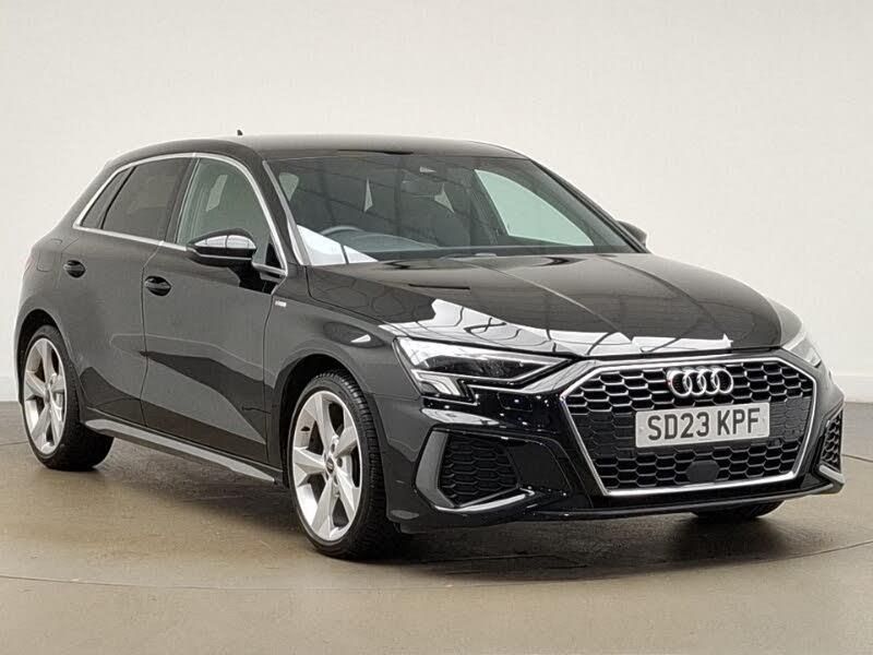 Android Auto, Apple CarPlay, Cruise control, LED daytime running lights, LED Headlights, Rear parking sensor, Audi drive select (Auto, Comfort, Dynamic and Individual), Audi smartphone interface, Audi Virtual Cockpit - 10.25" digital and colour instrument cluster, Automatic start/stop system with recuperation, Bluetooth interface, Collision avoidance assistant, Cruise control, e-Call (emergency call), Electromechanical power speed sensitive steering, Lane departure warning system, MMI Navigation Plus with high resolution 10.1" colour touch screen display, Rear parking sensors, Service indicator, Trip computer, Voice control system with natural language interaction, 2xUSB-C connection with data and charging functions, 6 passive loudspeakers, DAB Digital radio, Auto dimming frameless rear view mirror, Electrically adjustable/heated/folding/auto dimming door mirrors with integrated LED indications + kerb view function for passenger side, LED daytime running lights, LED headlights with LED rear lights and dynamic rear indicators, Light and rain sensors, Privacy glass - dark tinted rear window, rear door and side windows, Rear electric windows, Rear side air outlets in grained matt black, Dual zone electronic climate control, Front and rear centre armrest in leather, Front and rear headrests, Front/rear floor mats, Illuminated vanity mirror, Height and reach adjustable steering wheel, Aluminium interior elements pack - A3 Sportback, LED interior lighting pack - A3 Sportback, S line styling pack - A3 Sportback, Electronic Stabilisation Control (ESC) including ABS, ASR and EDL, Front side airbags with head airbags and interaction airbag, Anti theft alarm, Anti-theft wheel bolts, Electronically operated child lock, Accent surfaces in the dashboard and centre console in platinum grey silk effect paint finish, Dark spectrum aluminium inlays