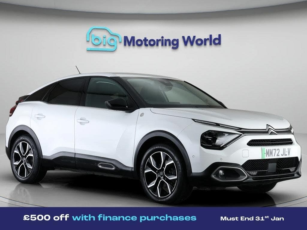 £500 towards your finance depo-Our Citroen e-C4 is finished in White. Specification includes a range of fantastic features including £500 towards your finance deposit, Head up Display, 18'' alloy wheels, Part Leather Seats, Satellite Navigation, Privacy Glass, Heated Seats, Rear View Camera, Heated Steering Wheel, Bluetooth Specification information is supplied by CAPHPI and may vary to the actual car. This data does not form any part of a buying contact. Please check specification prior to purchase in-store. The MOT is valid until December 2026, visit bigmotoringworld.co.uk for more photos, a 360 tour, service history and a free HPI report.Were BIG on peace of mind and this White Citroen e-C4 has completed our comprehensive 200 point inspection and passed all checks. Its ready for you to drive away with immediate collection in-store. We include a 90-day warranty as standard plus an option to extend for up to 3 years.Reserve this car exclusively for you, safely and securely at bigmotoringworld.co.uk, with a fully refundable £99 deposit. Test drive before you buy, with no commitment, no hassle and a completely haggle free experience. Still searching and want to see thousands more cars? We are BIG on choice with over 8000 cars to choose from.Visit our award winning web site bigmotoringworld.co.uk.Were Big Motoring World and were BIG on what matters to you.