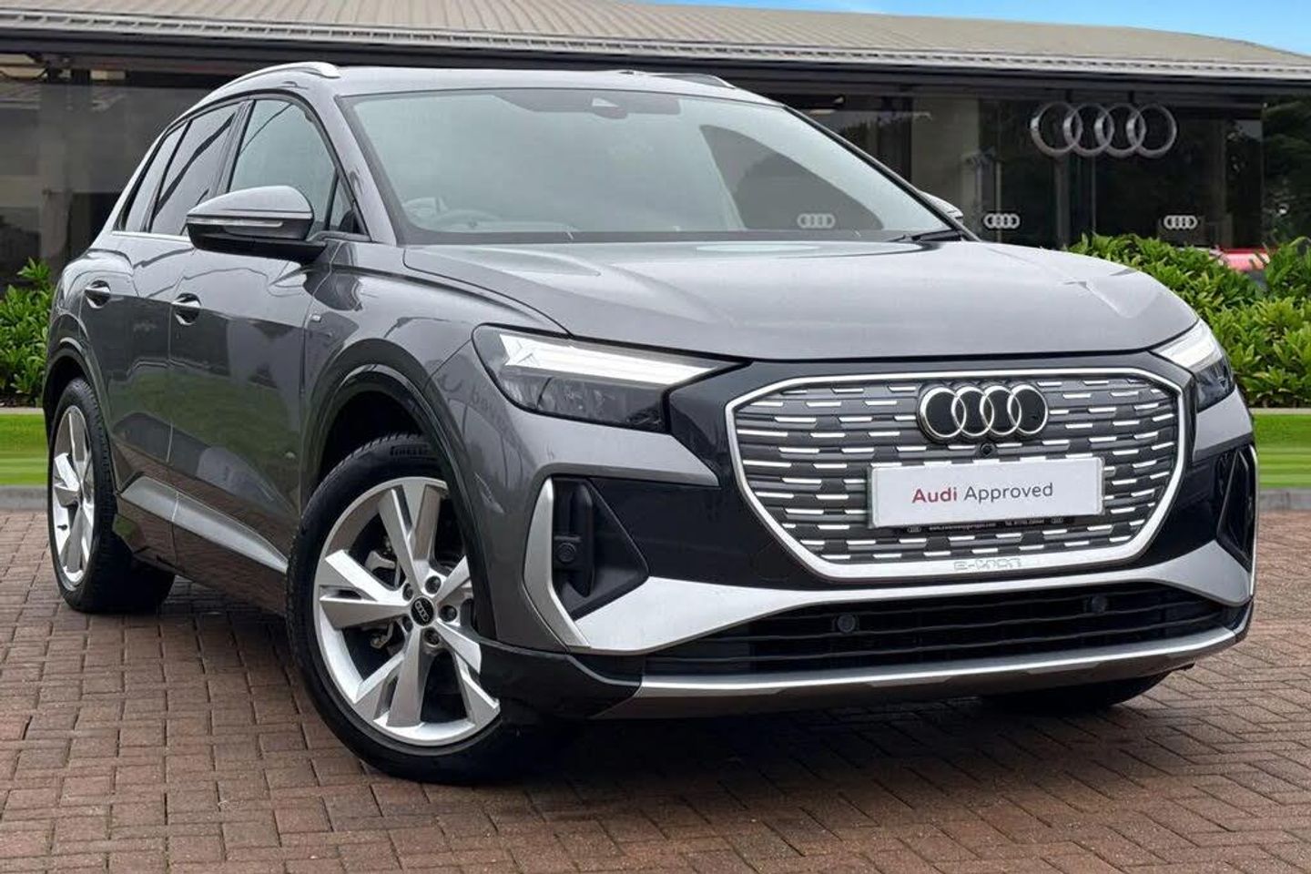 Make a bold first impression with the Audi Q4 S line 40 e-tron, finished in the sophisticated Typhoon Grey metallic. Its athletic S line styling, sharp contours, and confident SUV stance combine to create a modern design that looks as advanced as the technology beneath it. This is an all-electric Audi that delivers premium appeal without compromise. Powering the Q4 e-tron is a smooth and responsive all-electric drivetrain, offering quiet, refined performance and zero tailpipe emissions. When it's time to recharge, convenience comes as standard-using a public rapid charger, the battery can be charged from 10-80% in around 30 minutes, helping you get back on the road quickly and with confidence, whether commuting or heading further afield. Step inside and you're welcomed by a high-quality, driver-focused cabin designed for everyday comfort. Heated front seats add warmth on colder mornings, while the advanced touchscreen MMI infotainment system keeps you connected and in control. With Apple CarPlay and Android Auto, your favourite apps, navigation, and music are seamlessly integrated. This vehicle is compliant with Clean Air Zone (CAZ) or Ultra Low Emission Zone (ULEZ) regulations, meaning it produces low emissions and helps to improve air quality in our cities. We offer flexible finance packages* Terms & conditions apply. For further information or a finance quote please call our sales team.