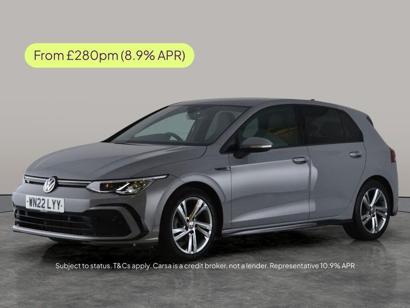 Discover this stylish grey Volkswagen Golf R-Line, featuring Adaptive Cruise Control, seamless Apple CarPlay, and convenient Keyless Entry. Enjoy crisp sound with Bluetooth Audio Streaming and stay confidently on course with built-in Sat Nav and Discover Navigation. The experience is enhanced by LED Headlights and a luxurious heated steering wheel. Front and rear parking sensors offer peace of mind, while the Digital Cockpit Pro and selectable driving modes put you in control of every journey. 3 services recorded, last serviced on 30/04/2025 at 23,074 miles. MOT to 25/01/2027. Visit our website for service history, online valuation, full vehicle specification plus multiple images. This vehicle is VAT qualifying. Any feature/option specified here is from 3rd party data. We cannot guarantee the accuracy of any specification supplied by a 3rd party. We recommend that you physically check the specification of the vehicle on site prior to purchase. This information does not form part of the buying contract. Terms & Conditions apply. We have over 2,000 cars available from our 10 national branches, check our website to see all our stock. Our Trustpilot rating is 4.4/5 with over 9,000 reviews.