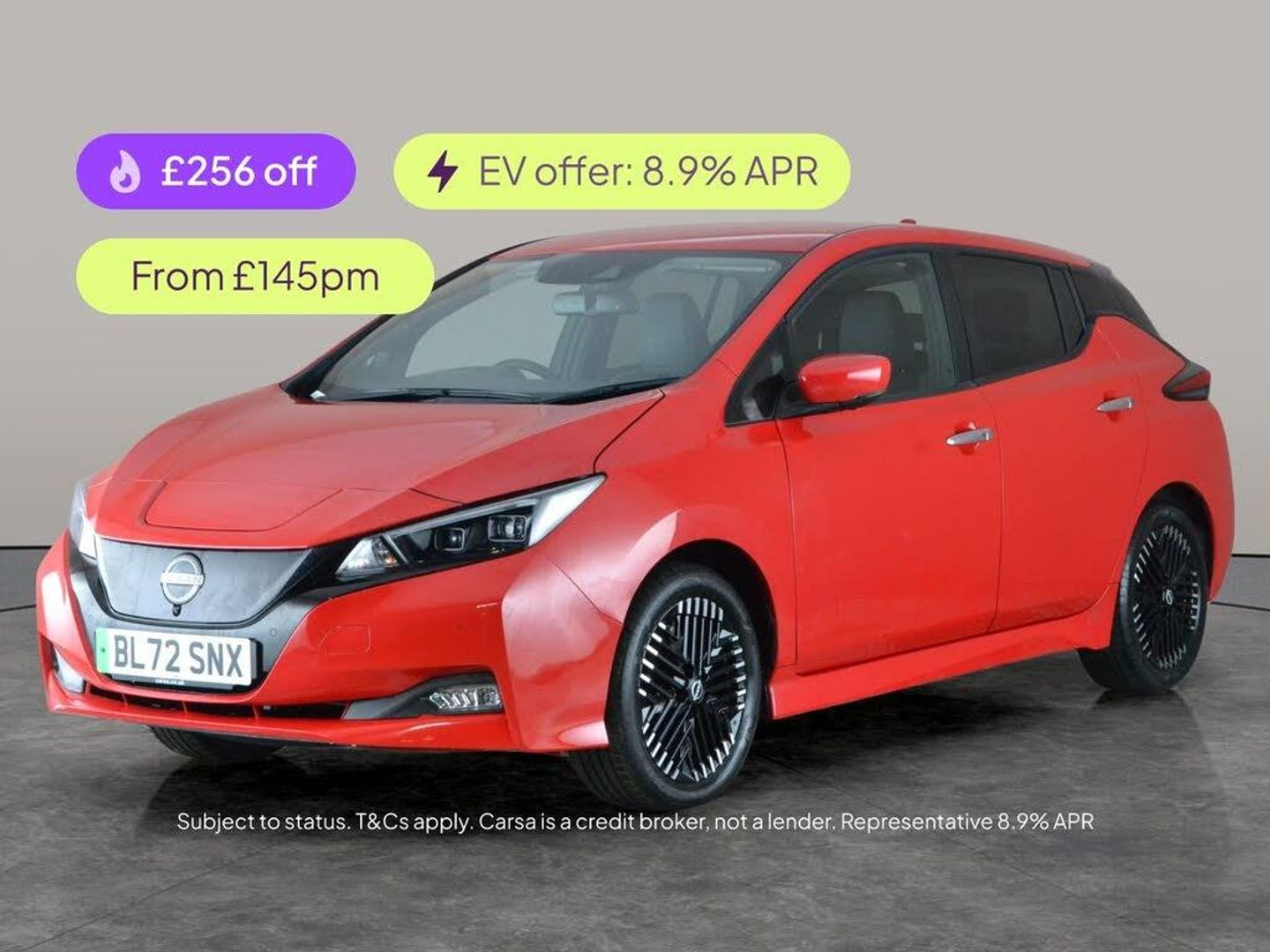Experience the Nissan Leaf Hatchback in striking red, featuring luxurious Alcantara seats, a premium BOSE sound system, and advanced surround view with a 360-degree camera. Enjoy heated front seats and a heated steering wheel for added comfort, plus seamless connectivity with Apple CarPlay and built-in Sat Nav. Stay safe with Intelligent Lane Intervention and brilliant LED headlights. This Leaf blends cutting-edge technology, comfort, and practicality in a stylish electric package. 1 service recorded, last serviced on 27/01/2026 at 16,674 miles. MOT to 18/12/2026. Visit our website for service history, online valuation, full vehicle specification plus multiple images. This vehicle is VAT qualifying. Any feature/option specified here is from 3rd party data. We cannot guarantee the accuracy of any specification supplied by a 3rd party. We recommend that you physically check the specification of the vehicle on site prior to purchase. This information does not form part of the buying contract. Terms & Conditions apply. We have over 2,000 cars available from our 10 national branches, check our website to see all our stock. Our Trustpilot rating is 4.4/5 with over 9,000 reviews.