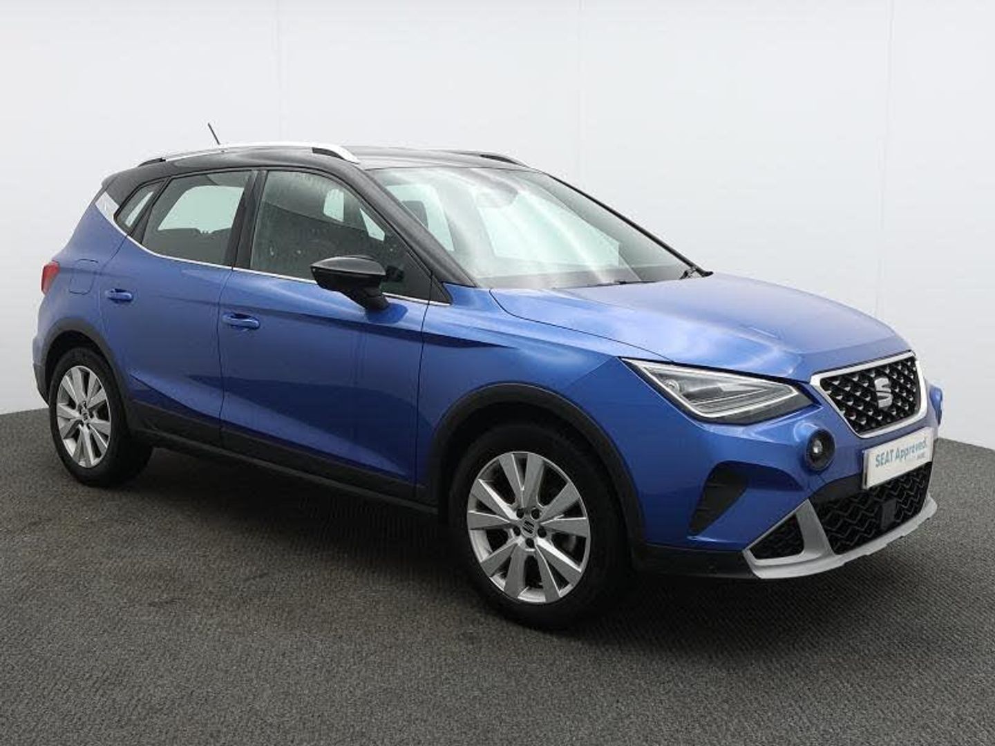 Paint - Metallic, Metallic - Saphire blue with Black roof, Trim - Cloth, Cloth - Sano textrim, Exterior Features, Electric front/rear windows, Rain sensing wipers, Rear window wash/wipe, Windshield wiper with intermittent control and potentiometer, Anti theft roof antenna, Body coloured bumpers, Body coloured door handle inserts, Chrome roof rails and window surrounds, Hidden exhaust pipe, Protective side mouldings, Rear side wing doors, Rear spoiler, Visible VIN plate, Automatic activation of hazard warning lights, Front fog lights with cornering function and rear fog light, FULL LED automatic headlights with dynamic headlight range control, coming and leaving home, LED daytime running lights, LED rear tail lights and licence plate lights, Third brake light, Safety, ABS, Electronic stability control, Emergency Brake Assist (EBA) and front assist, Hill hold control, Multi-Collision braking, Traction control, Electric speed sensitive power steering, Lane keeping system, Rear parking sensor, Auto dimming interior rear view mirror, Electrically adjustable, heated and folding door mirrors, Roof colour door mirrors, 3 point seatbelts on all rear seats, Active front headrests, Child locks on rear doors, Driver and front passenger airbags with front passenger airbag de activation, front side and curtain airbags, Front and rear seatbelt reminder, Tiredness recognition system, Tyre pressure monitoring system, Audio / Communications, E-call, 9.2 inch colour touchscreen with navigation system, voice control and USB port (type c), Bluetooth interface for hands free and audio streaming, DAB digital radio and AM/FM radio, Steering wheel mounted audio controls, Driver Convenience, Wireless phone charger, Miscellaneous, 'Lights On' Reminder warning buzzer, 8 inch Digital cockpit, Digital clock, Full Link Smartphone Integration with Mirror Link, Apple Car Play, Google Android Auto with USB Type C cable for Apple and Android compatibility, Low fuel warning light, Outside temperature display, RPM counter, Seat connect with safety, service, remote and online, Trip computer, Trim, Titan black dashboard, 3 seat bench in 2nd row, 60/40 split folding rear seat, Front seat back storage pockets, Height adjustable front seats, ISOFIX points in outer rear seats with top tether anchorage points, Single front passenger seat, Two front and three rear height adjustable headrests, Interior Features, Aircare filter, Dual zone climate control, 2 cupholders, Black interior roof, Cloth upholstery, Double boot floor, Flat bottomed leather steering wheel/gear knob/handbrake, Gear shift indicator, Height/reach adjustable steering column, Leather steering wheel/gear knob/handbrake, Storage net on centre console, Front courtesy light with 2x front and 2x rear reading lights, Illuminated boot, Instrument lighting with brightness control, Interior ambient lighting, Interior light in footwell, central console and door panel, Driver sunvisor with covered mirror + card holder, Passenger sunvisor with vanity mirror, Packs, Interior chrome pack - Arona, Safety and driving pack (M) - Arona, Storage pack - Arona, Security, Alarm with back-up horn, Electronic engine immobiliser, KESSY Keyless entry and go, Locking wheel bolts, Remote central locking + deadlocks, Tow away protection, Wheels, 17 inch Dynamic alloy wheels
