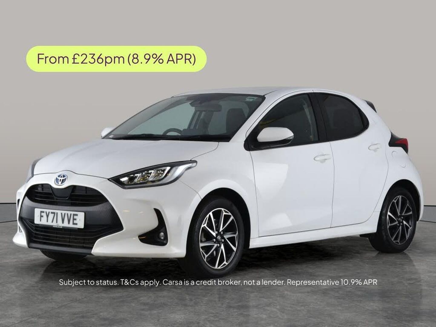 Experience the Toyota Yaris Hybrid, a smart white hatchback packed with features to make every drive enjoyable. Stay connected with Apple CarPlay and Bluetooth audio streaming, and enjoy the crystal-clear illumination of LED headlights and daytime running lights. Adaptive cruise control, a reversing camera, and lane departure alert add confidence to your journeys. Relax with digital climate control, and take control with selectable driving modes. This Yaris sits on stylish 16in alloy wheels for a dynamic look and feel. 3 services recorded, last serviced on 04/09/2025 at 13,218 miles. MOT to 30/10/2026. Visit our website for service history, online valuation, full vehicle specification plus multiple images. Any feature/option specified here is from 3rd party data. We cannot guarantee the accuracy of any specification supplied by a 3rd party. We recommend that you physically check the specification of the vehicle on site prior to purchase. This information does not form part of the buying contract. Terms & Conditions apply. We have over 2,000 cars available from our 10 national branches, check our website to see all our stock. Our Trustpilot rating is 4.4/5 with over 9,000 reviews.