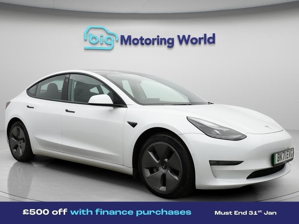£500 towards your finance depo-Our Tesla Model 3 is finished in White. Specification includes a range of fantastic features including £500 towards your finance deposit, All Wheel Drive, Leather Seats, Adaptive Cruise Control, Satellite Navigation, Heated Seats, Wireless Phone Charging, Rear View Camera, Heated Rear Seats, Heated Steering Wheel Specification information is supplied by CAPHPI and may vary to the actual car. This data does not form any part of a buying contact. Please check specification prior to purchase in-store. The MOT is valid until September 2026, visit bigmotoringworld.co.uk for more photos, a 360 tour, service history and a free HPI report.Were BIG on peace of mind and this White Tesla Model 3 has completed our comprehensive 200 point inspection and passed all checks. Its ready for you to drive away with immediate collection in-store. We include a 90-day warranty as standard plus an option to extend for up to 3 years.Reserve this car exclusively for you, safely and securely at bigmotoringworld.co.uk, with a fully refundable £99 deposit. Test drive before you buy, with no commitment, no hassle and a completely haggle free experience. Still searching and want to see thousands more cars? We are BIG on choice with over 8000 cars to choose from.Visit our award winning web site bigmotoringworld.co.uk.Were Big Motoring World and were BIG on what matters to you.