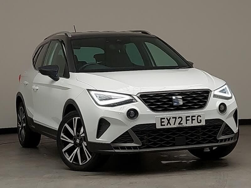 Android Auto, Apple CarPlay, LED daytime running lights, LED Headlights, MirrorLink, Rear parking sensor, Steering wheel audio controls, 'Lights On' Reminder warning buzzer, Analogue cockpit with physical dials, Digital clock, E-call, Full Link Smartphone Integration with Mirror Link, Apple Car Play, Google Android Auto with USB Type C cable for Apple and Android compatibility, Lane keeping system, Rear parking sensor, SEAT Drive profile - Four different models normal-sport-eco-individual, steering response, throttle response, Wireless phone charger, Seat connect with safety, service and remote, Low fuel warning light, Hill hold control, Locking wheel bolts, Titan black dashboard, Media system with 8.25" colour touchscreen with USB port (type c), Dark tinted rear windows, Dimming rear view mirror, Electrically adjustable and heated door mirrors, FULL LED automatic headlights with dynamic headlight range control, coming and leaving home, LED daytime running lights, Dual zone climate control, Front comfort seats, Height adjustable front seats, Interior chrome pack - Arona, KESSY Keyless entry and go