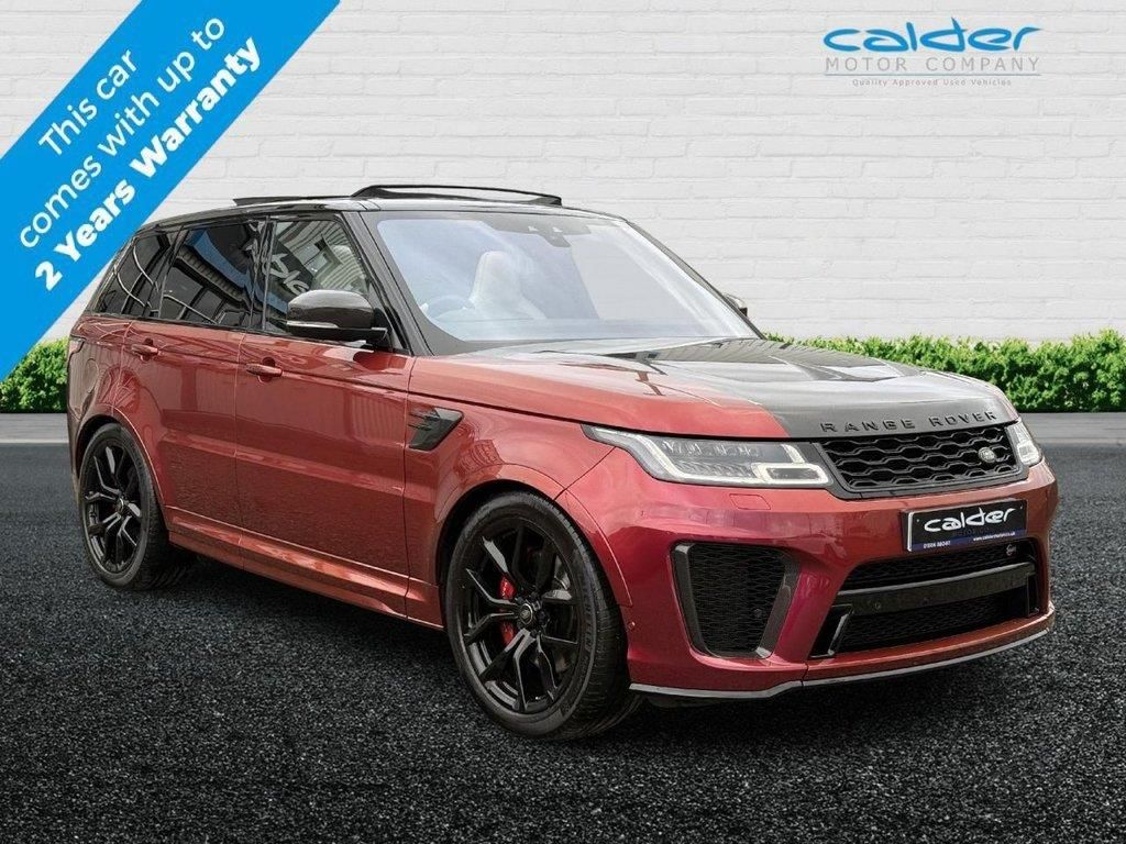 Simply outstanding SVR with a One Off Spec, Finished in SVO Spectral Racing Red with the Full Carbon Fibre Exterior pack including Exposed Carbon Fibre Bonnet and Finished with Ebony and Cirrus Perforated Windsor Leather Upholstery and Extended Carbon Fibre Finishers. This car has only had One Former Keeper with a Full Land Rover Service History. Mega spec SVR with over £19,000 of options including 1280 Watt Meridian Sound System, Heated and Cooled Front Seats, Heated Rear Seats, Heated Steering Wheel, SVO Paint, Carbon Fibre External and Internal packs, Heads Up Display, Opening Glass Panoramic Sunroof, Ambient Lighting, 22" Gloss Black 5 Split Spoke Alloy Wheels Wrapped in Michelin Pilot Sport Tyres, Keyless Entry, Reversing Camera, Satellite Navigation, Bluetooth with Full Audio Streaming and so much more. This car has Two Keys and Full Dealer Service History. This Approved vehicle come's with our full care package including up to 2 years Platinum Plus Warranty with The Motoring Organisation, 1 years MOT, Full pre-delivery inspection, Full service ( if required ) and Fully Valeted. All Calder Motor Company Premier Approved vehicles are prepared to the highest standard in every way, cosmetically and mechanically. National delivery available. The Motoring Organisation Platinum Plus extended warranty available for up to 2 years. Face time or whats app video walk round available on request. SUNDAY'S BY APPOINTMENT ONLY. EVERY EFFORT HAS BEEN MADE TO ENSURE THE ACCURACY OF THE INFORMATION REGARDING THE VEHICLES SPEC HOWEVER ERRORS MAY OCCUR. CHECK WITH A SALESPERSON ABOUT ITEMS WHICH MAY AFFECT YOUR DECISION TO PURCHASE. Please feel free to Contact us via Phone, Email, Social Media. Nationwide Delivery, All Vehicles Are Fully Disinfected. Full Walkround Video, Face Time Etc. . Pixel-laser LED Headlights with Signature DRL,Heated and Cooled Front Seats with Heated Rear Seats,22in Alloy Wheels - 5 Split Spoke Style 5083 with Gloss Black Finish,360 Degree Parking Aid,Active Exhaust Control,Adaptive Cruise Control with Stop and Go,Adaptive Dynamics,Auto-Dimming Interior Mirror,Automatic Headlights,Blind Spot Monitor,Bluetooth Connectivity,Clear Exit Monitor,Configurable Dynamics,Configurable Interior Mood Lighting,Contrast Painted Roof - Narvik Black,DAB - Digital Audio Broadcast,Driver and Passenger Airbags,Driver Condition Monitor,DSC - Dynamic Stability Control,Electrically Adjustable Steering Column,ETC - Electronic Traction Control,Extended Carbon Fibre Trim Finisher,Extended Leather Upgrade,Head Up Display,Heated Front and Rear Seats,Heated Steering Wheel,Hill Launch Assist,InControl Apps,InControl Protect,Keyless Entry,Lane Departure Warning,Lightweight Exhaust System,Low Traction Launch,Meridian Surround Sound System 825W,Navigation Pro,Pixel LED Headlights with Signature DRL,P