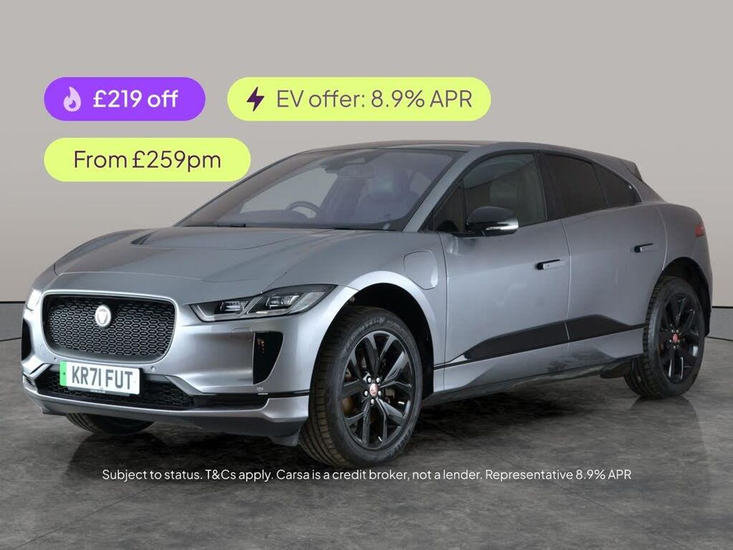 Experience the future of driving with this Jaguar I-PACE. Enjoy open skies through the panoramic roof and sunroof, and drive with confidence thanks to adaptive cruise control, blind spot assist and lane departure warning. Stay connected with Apple CarPlay and Bluetooth, savour year-round comfort with a heated steering wheel and dual zone climate control, and navigate with ease using the reversing camera and traffic sign recognition. LED headlights ensure excellent visibility, while keyless entry adds everyday convenience. 3 services recorded, last serviced on 14/12/2025 at 38,349 miles. MOT to 17/10/2026. Visit our website for service history, online valuation, full vehicle specification plus multiple images. Any feature/option specified here is from 3rd party data. We cannot guarantee the accuracy of any specification supplied by a 3rd party. We recommend that you physically check the specification of the vehicle on site prior to purchase. This information does not form part of the buying contract. Terms & Conditions apply. We have over 2,000 cars available from our 10 national branches, check our website to see all our stock. Our Trustpilot rating is 4.4/5 with over 9,000 reviews.