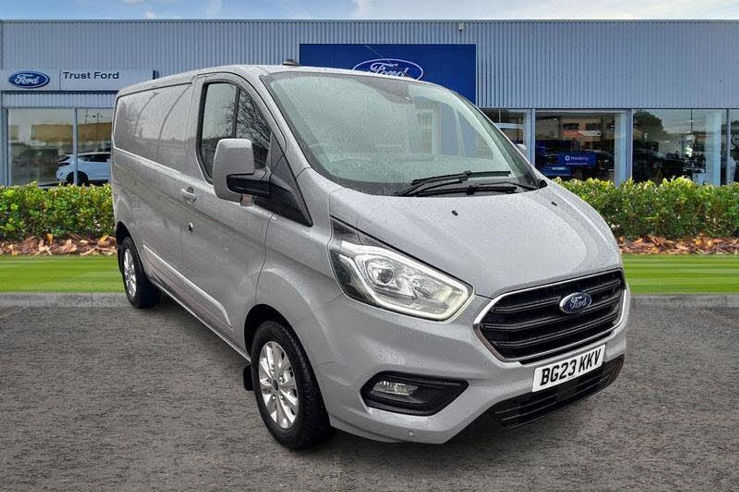 Anti-lock brake system, Remote central locking, Driver's airbag, PAS, Recirculation heater, Spare wheel, Headlamp levelling, Load compartment interior light, Rear mudflaps, Electronic Stability Programme, Trip computer, Cloth upholstery, 3 point seatbelts for all seats, Height adjustable drivers seatbelt mount, Map reading lights, Reach and rake adjustable steering column, Header mounted package tray, Body coloured door mirrors, Intermittent front wash/wipe, Body coloured body side mouldings, Tool kit, Audio controls mounted on steering wheel, Passenger underseat storage box, Height adjustable front headrests, Configurable Unlocking, Full wheelcovers, Automatic lights and wipers, Body coloured rear bumpers, Power door dead locks, Auto relocking, Auto locking on drive-away, Assist handle, Power point plug 400W - Level 2, Floorwell lights, Header mounted courtesy lights - 2 map lights, Passenger seatbelt height adj, 2 12v sockets, Illuminated footwell, Diesel particulate filter, Front outer passenger airbag with deactivation switch, Easy fuel capless refuelling system, Electric front windows with one touch facility for driver and front passenger, Low roof line, 80 litre fuel tank, Ford Eco mode, Driver and passenger sunvisors with illuminated vanity mirrors, Auto start/stop system, Thatcham category 1 alarm with 2nd remote key, Mechanical parking brake, Roll stability control, Side wind mitigation, Lockable glove box, 16 6.5 alloy wheels, Front manual air conditioning, Vehicle maintenance monitor, Selectable drive mode, Extra heavy duty alternator, Complete rear trim board, Body coloured lift/decklid exterior handles, Tutone painted plastic front bumper, Chormed grille with 3 bars, Automatic headlamps with follow me home, Leather gearshift knob, Colour keyed exterior pack, Sunglasses roof storage, Body colour door handles, Seatbelt remainder for driver and passenger, Kerbside side load doors, Embedded modem, Body coloured exterior mirror finish, Molded load floor liner, Emergency brake light flashing, Dual note electric horn, 180 Degree rear cargo check arms, Standard duty suspension, Door open tyre carrier drop, Wide bodyside grey mouldings, Rear door edge warn reflectors, 2 Interior grab handles, Interior trim accent pack C - Transit custom, Less rear seat pack - Transit Custom, Inclination anti-Theft sensor, Speed dependent power lock group, Front splash guards/Mud flaps, Side rear door trim panel - Level 1, Partial molded headliner, Locking wheel lug nut, Rear splash guards, Quad beam headlamps, LED load compartment rail light, Passenger airbag restraint, Rear cargo hinged door, Unrestricted side load door opening, Delete roof mounted turn signals, Load area protection kit 2 - Transit Custom