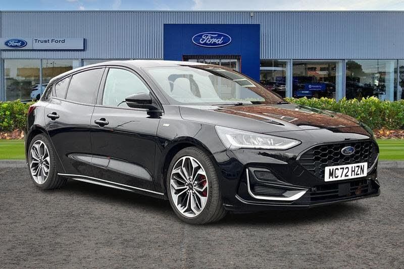 12.3 Digital instrument cluster, Bluetooth system, Digital clock, Easy fuel capless refuelling system, Eco mode, Ford SYNC4 Nav with 13.2'' touchscreen, DAB, Emergency Assistance, Apple Carplay & Android Auto, B&O Premium Audio with 10 speakers, FordPass Connect, Lane keeping system - lane keeping alert and lane keeping aid, PAS, Rev counter, Selectable drive mode, Service interval indicator, Trip computer, Wireless charging pad, Auto headlamps (on/off), Body coloured door handles, Electrically operated front and rear windows with one touch opening and closing, Electrically operated heated power fold door mirrors with puddle lamp with side indicators, Front variable intermittent wipers with electric wash, Heated rear window, LED daytime running lamp, LED rear lamps, LED third brake light, Polished twin tailpipe, Privacy glass, Quickclear heated windscreen, Rain sensor, Rear side wing doors, Tailgate wash/wipe, Unique ST-Line grille, full bodystyling kit, and large body coloured rear spoiler, 3 rear headrests, 3 seat bench in 2nd row, Dual zone electronic air temperature control, Full sensico premium upholstery, Height adjustable front headrests, Isofix child seat preparation, Load through ski hatch, Manual 4-way passenger seat adjusts, Power 4-way driver seat adjust, with power lumbar adjust, Reach + rake adjustable steering column, Single front passenger seat, 3x3 point rear seatbelts, ABS+Electronic Brake force Distribution, Auto hold function, Driver airbag, EDL traction control, Electronic parking brake, Electronic stability control, Front and rear seatbelt reminder, Front inertia reel height adjustable seatbelts with pre-tensioners, Front passenger airbag, Front side airbags, Passenger airbag deactivate switch, Post collision braking, Pre collision assist with autonomous emergency braking and pedestrian/cyclist detection, Red brake calipers, Remote/power child rear door locks, Side curtain airbags, Three rear inertia reel lap/diagonal seatbelts, Tyre pressure monitoring system