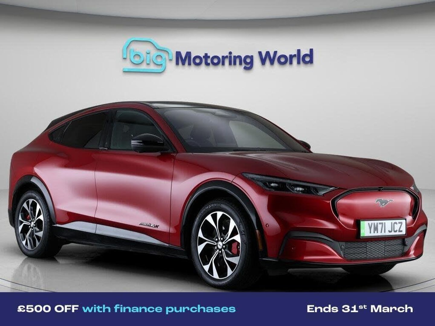 £500 towards your finance depo-Our Ford Mustang Mach-E comes with optional extras worth £1,150. Specification includes a range of fantastic features including £500 towards your finance deposit, All Wheel Drive, Panoramic Roof, 19'' Alloy wheels, Leather Seats, Apple CarPlay, Adaptive Cruise Control, Bang & Olufsen Speakers, Premium Sound System, Android Auto Specification information is supplied by CAPHPI and may vary to the actual car. This data does not form any part of a buying contact. Please check specification prior to purchase in-store. The MOT is valid until December 2026, visit bigmotoringworld.co.uk for more photos, a 360 tour, service history and a free HPI report.Were BIG on peace of mind and this Red Ford Mustang Mach-E has completed our comprehensive 200 point inspection and passed all checks. Its ready for you to drive away with immediate collection in-store. We include a 90-day warranty as standard plus an option to extend for up to 3 years.Reserve this car exclusively for you, safely and securely at bigmotoringworld.co.uk, with a fully refundable £99 deposit. Test drive before you buy, with no commitment, no hassle and a completely haggle free experience. Still searching and want to see thousands more cars? We are BIG on choice with over 8000 cars to choose from.Visit our award winning web site bigmotoringworld.co.uk.Were Big Motoring World and were BIG on what matters to you.