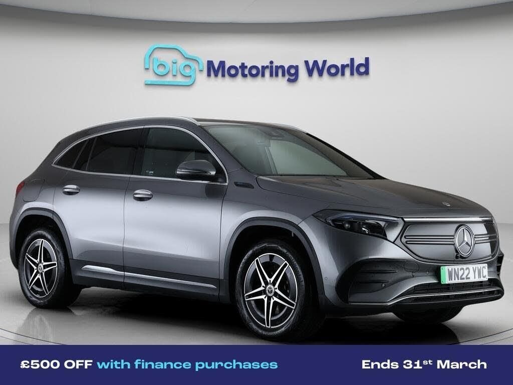 £500 towards your finance depo-Our Mercedes-Benz EQA is finished in Grey. Specification includes a range of fantastic features including £500 towards your finance deposit, 18'' alloy wheels, Part Leather Seats, AMG body styling, Privacy Glass, Heated Seats, Rear View Camera, Bluetooth, Parking Sensors, Mercedes Me Specification information is supplied by CAPHPI and may vary to the actual car. This data does not form any part of a buying contact. Please check specification prior to purchase in-store. The MOT is valid until February 2027, visit bigmotoringworld.co.uk for more photos, a 360 tour, service history and a free HPI report.Were BIG on peace of mind and this Grey Mercedes-Benz EQA has completed our comprehensive 200 point inspection and passed all checks. Its ready for you to drive away with immediate collection in-store. We include a 90-day warranty as standard plus an option to extend for up to 3 years.Reserve this car exclusively for you, safely and securely at bigmotoringworld.co.uk, with a fully refundable £99 deposit. Test drive before you buy, with no commitment, no hassle and a completely haggle free experience. Still searching and want to see thousands more cars? We are BIG on choice with over 8000 cars to choose from.Visit our award winning web site bigmotoringworld.co.uk.Were Big Motoring World and were BIG on what matters to you.