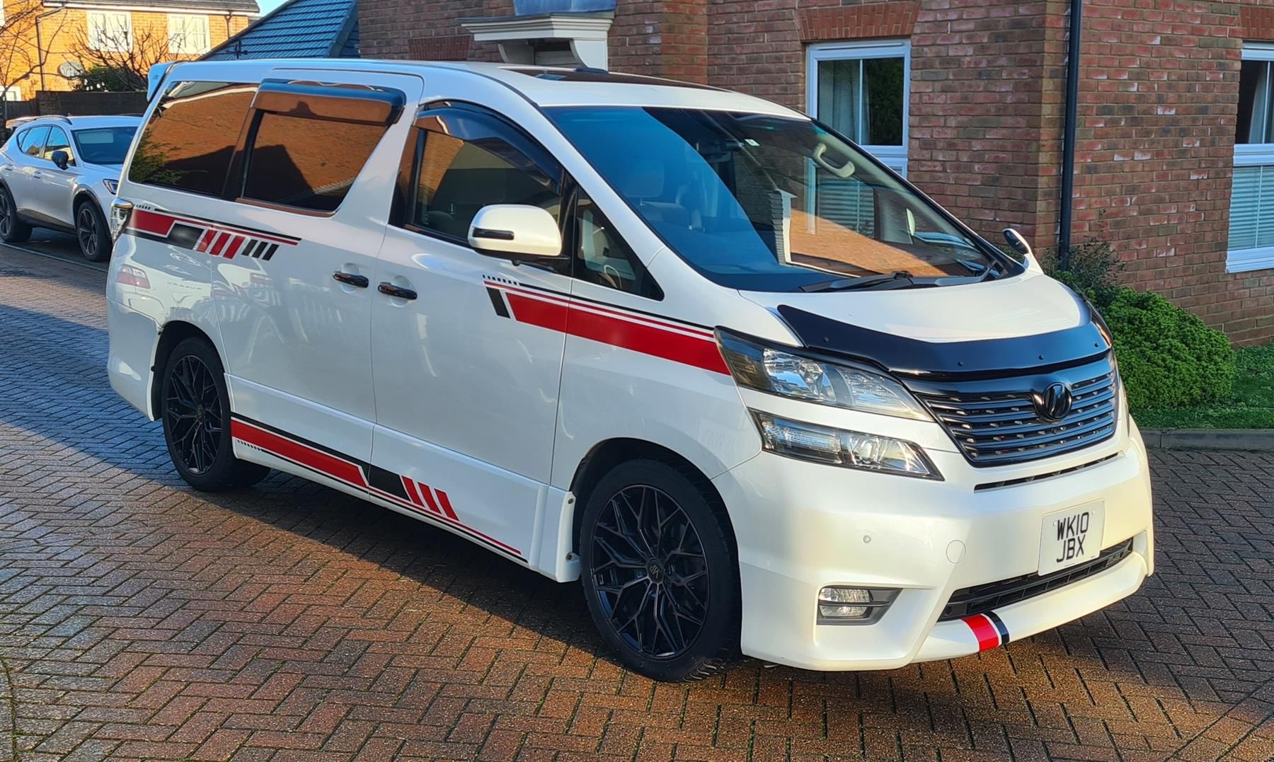 We are selling our 2010 Toyota Vellfire 3.5Z G Edition V6 (GGH20W) that has middle row Captain seats and Foot Rests that fold down from the front seats. The front passenger seat also has an electric leg rest that folds out of the seat. There is also Twin Sunroofs where the middle sunroof is the size of the middle cabin. The interior is in a soft cloth and is in fantastic condtion with no rips, marks or tears.