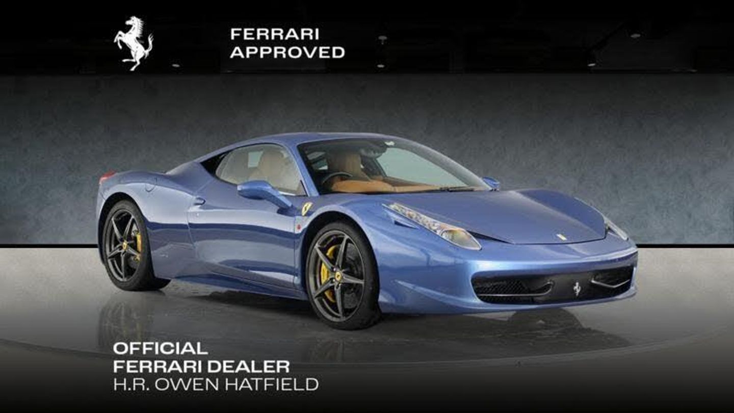 Giallo Modena brake callipers, Carbon fibre exterior sill plate, carbon fibre upper tunnel trim, Exterior ColourBlu Mirabeau, Carbon fibre front spoiler, Rear segment in carbon fibre, Scuderia Ferrari shields, Forged wheels metallic Grigio Ferro, Alcantara luggage compartment mats Nera, Alcantara passenger compartment mats Nera, Carbon fibre trim driver zone and LED shift indicators on steering wheel, Carbon fibre centre console, Carpet Colour, Carbon fibre dashboard accents, Upper and lower zone of dashboard in leather in colour of customer's choice Cuoio, Front zone of dashboard in colour of customer's choice Cuoio, Hand-held fire extinguisher, Interior ColourCuoio, Yellow tachometer dial face, Full-electric seats, Leather headliner in colour of customer's choice Nero, Standard stitching in colour of customer's choice Biege Chiaro, AFS (Adaptive frontlight system), Front suspension lift, Athermic windscreen, Ready-kit for use of iPod, Audio-navigator system with Bluetooth, Rear parking camera, Front and rear parking sensors, Premium Hi-Fi system