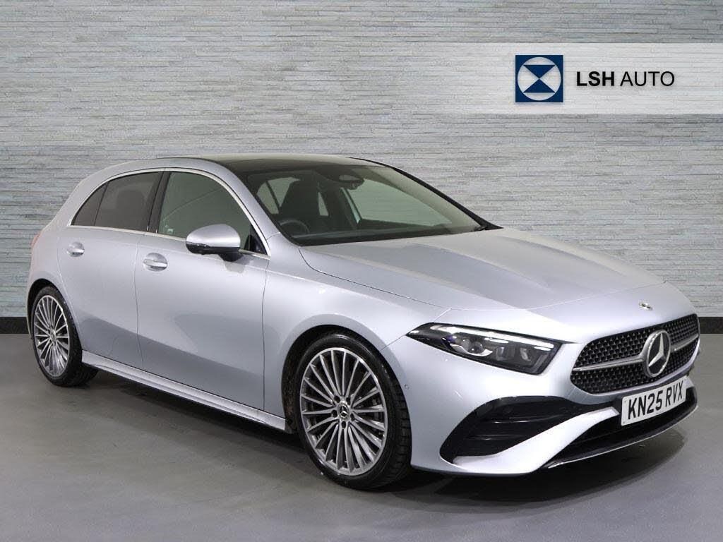 This Mercedes-Benz A Class A200h AMG Line (Premium Plus) is a 2025 registered vehicle with a full service history and only one owner from new, ensuring excellent provenance. It boasts a 1.3L petrol hybrid engine, meeting Euro 6 emission standards, and comes with a 12 month warranty for your peace of mind. The MOT is valid until March 2028, and it was last serviced at 10559 miles. This manufacturer approved Mercedes-Benz is equipped with Keyless Go including keyless entry, wireless charging for your devices, and dual Bluetooth interfaces for seamless connectivity.Experience impressive performance with an acceleration of 0-62mph in just 8.2 seconds, demonstrating its capability compared to other vehicles in its class. The AMG Line trim enhances its sporty appeal, while the generous boot space offers practicality for everyday use and longer journeys. This A Class combines sophisticated Mercedes-Benz engineering with advanced technology and a well documented history, making it a compelling choice.-*SUNROOF PREMIUM PLUS SAT NAV*-Mercedes-Benz A Class A200 AMG Line Premium Plus 5dr Auto-LSH Auto UK Ltd - An LSH Group Company. The Worlds Largest Retailer of Mercedes-Benz Passenger Cars