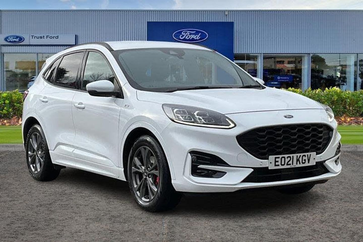 12.3 digital colour instrument cluster, Ford easy fuel, Ford SYNC 3 with 8 TFT LCD touchscreen, App Link, andriod auto/apple carPlay, emergency assistance and navigation with Ford pass connect, Front and rear parking sensors, Hands free power tailgate, Lane keeping aid with lane departure warning, Power assist steering, Rear view camera, Selectable drive modes, Service interval indicator, Auto headlamps with high and low beam, Black roof rails, Day/night rear view mirror, Front LED fog lamps, Large rear spoiler, LED daytime running lights, LED rear lights, Power folding heated door mirrors with puddle lights, Power front/rear windows with global close, Privacy glass, Quickclear heated windscreen, ST Line body styling kit with unique front and rear fascia and bumper, rear painted diffuser, front painted skid plates, dark mesh upper grille, ST Line front scuff plates, Third brake light, Twin exhausts, 10 way power adjustable drivers seat, 2nd row sliding seats with 60:40 split, 8 way manual passenger seat including lumbar support and height adjust, Alloy pedals, Centre console with electronic parking brake, Dark headlining and pillars, Dual electronic automatic temperature control, Flat bottomed leather steering wheel in sensico with red stitching, Front and rear head restraints, Partial premium touch sensico leather upholstery with black cloth inserts and red stitching, Rear charging point, Sports seats, ST Line front and rear floor mats, ST Line gear knob, 3x3 point rear seatbelts, Airbags - front driver/passenger, front and rear curtain, Drivers knee airbag, Electronic stability control (ESC) and ABS, Ford MyKey Gen 2 safety system, Manual child proof rear door locks, Post collision braking, Pre collision assist with autonomous emergency braking, Rear seat Occupancy alert, Red brake calipers, Tyre pressure monitoring system