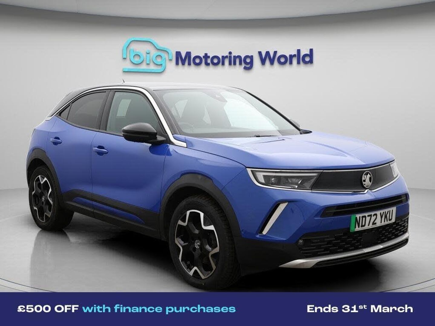 £500 towards your finance depo-Our Vauxhall Mokka Electric is finished in Blue. Specification includes a range of fantastic features including £500 towards your finance deposit, 18'' alloy wheels, Part Leather Seats, Leather Seats, Apple CarPlay, Adaptive Cruise Control, Massage Function Seats, Privacy Glass, Heated Seats, Rear View Camera Specification information is supplied by CAPHPI and may vary to the actual car. This data does not form any part of a buying contact. Please check specification prior to purchase in-store. The MOT is valid until November 2026, visit bigmotoringworld.co.uk for more photos, a 360 tour, service history and a free HPI report.Were BIG on peace of mind and this Blue Vauxhall Mokka Electric has completed our comprehensive 200 point inspection and passed all checks. Its ready for you to drive away with immediate collection in-store. We include a 90-day warranty as standard plus an option to extend for up to 3 years.Reserve this car exclusively for you, safely and securely at bigmotoringworld.co.uk, with a fully refundable £99 deposit. Test drive before you buy, with no commitment, no hassle and a completely haggle free experience. Still searching and want to see thousands more cars? We are BIG on choice with over 8000 cars to choose from.Visit our award winning web site bigmotoringworld.co.uk.Were Big Motoring World and were BIG on what matters to you.